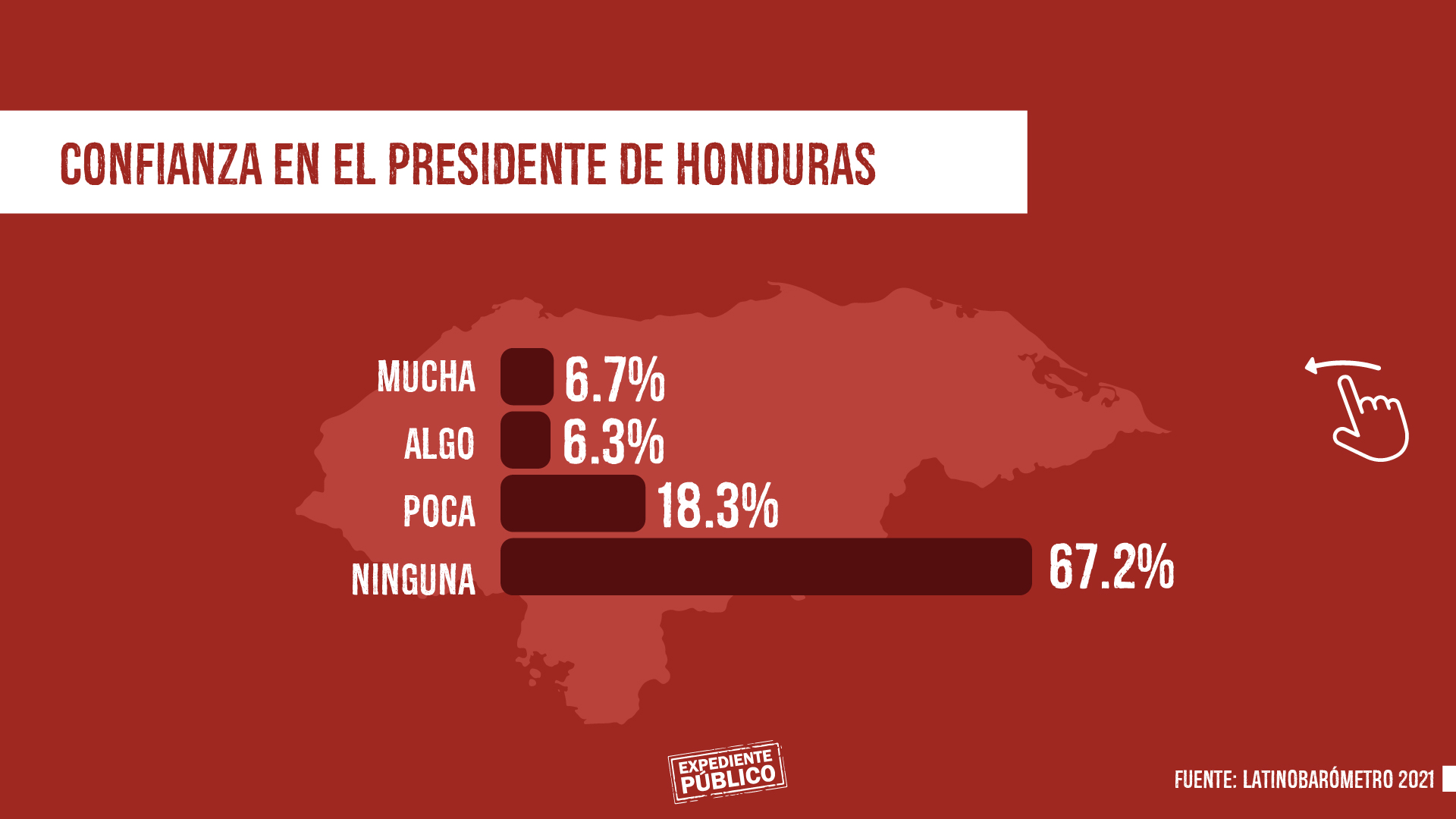 La confianza hacia Hernández es la más baja hacia un mandatario entre los tres países mencionados: 18.3% respondió que tiene “poca” y 67.2% que “ninguna” confianza.