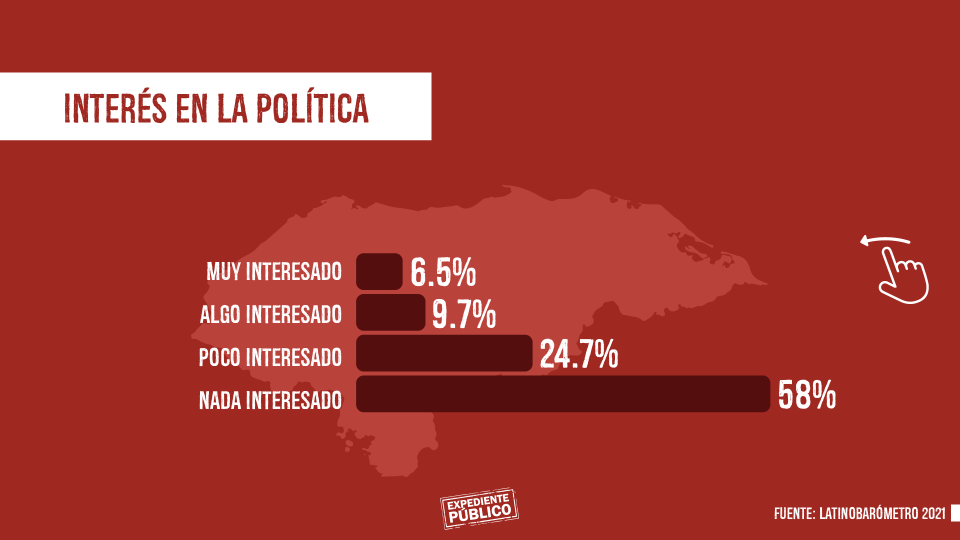 Ese porcentaje de abstención no dista mucho del 58% que dijo estar “nada interesado” en la política.