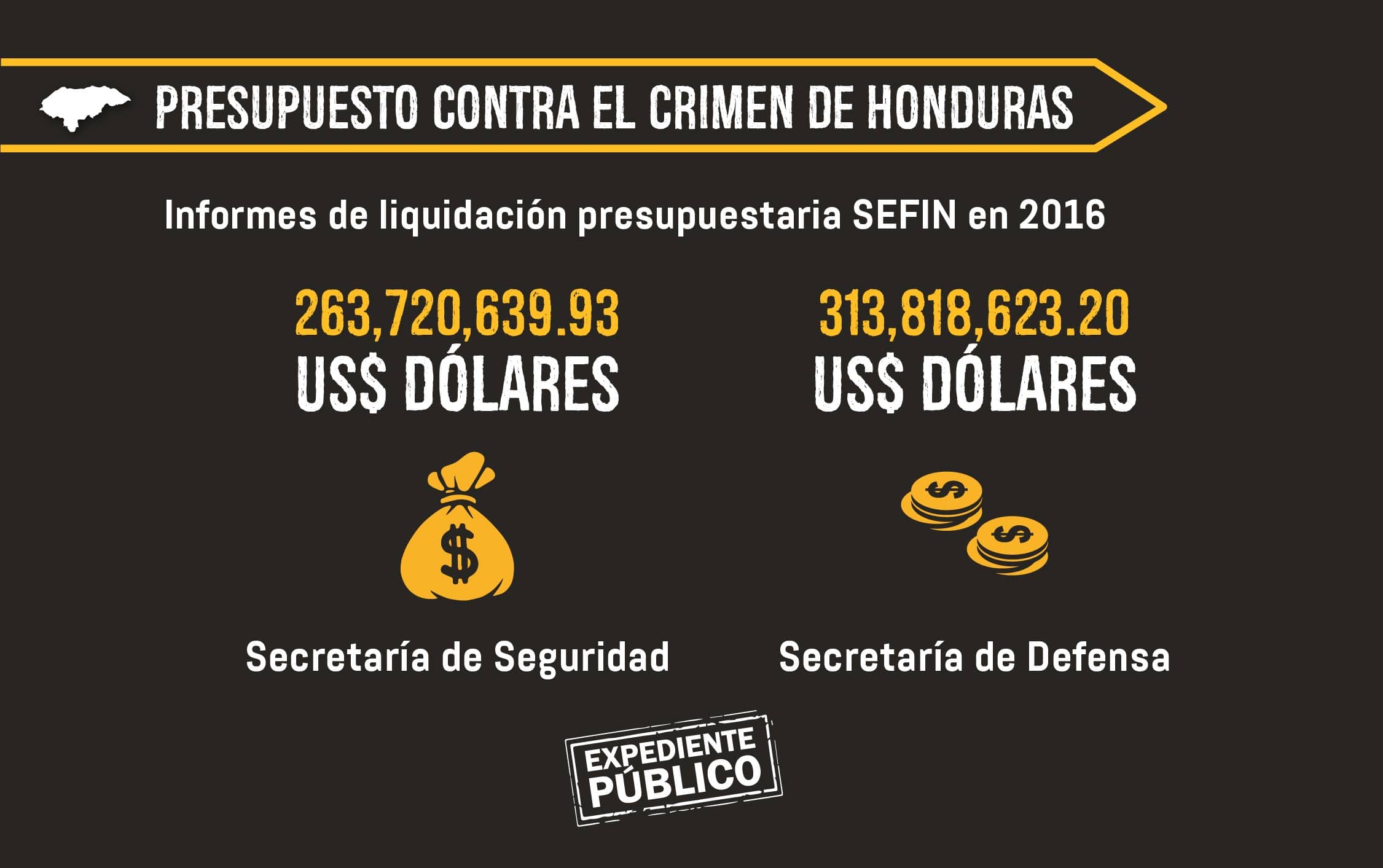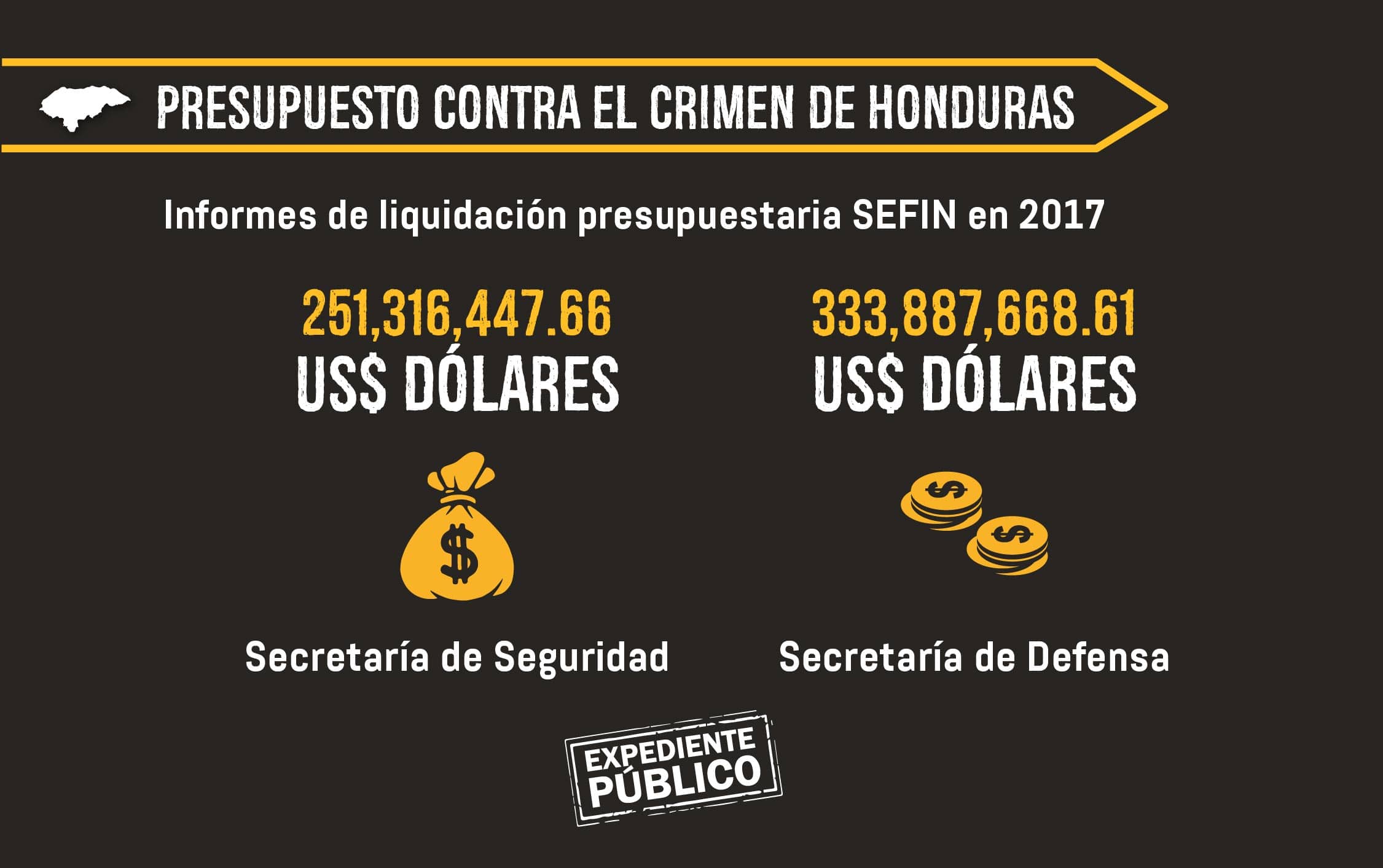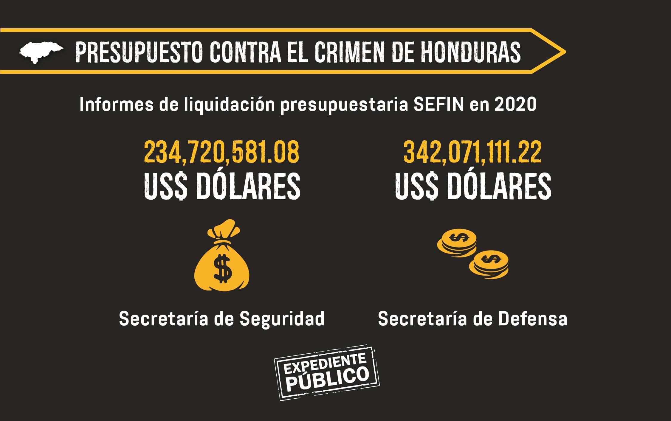 El presupuesto aprobado para la Secretaría de Seguridad en 2022 supera los 6,854 millones de lempiras (más de 280 millones de dólares), mientras que para Defensa fue superior a los 9,336 millones de lempiras (más de 383 millones de dólares). Además del presupuesto del tesoro nacional y previo a la pandemia del COVID-19, el monto de la Tasa de Seguridad por parte del Estado para las diferentes instituciones de seguridad, era de entre 1,300 a 1,600 millones de lempiras (unos 65 millones de dólares).