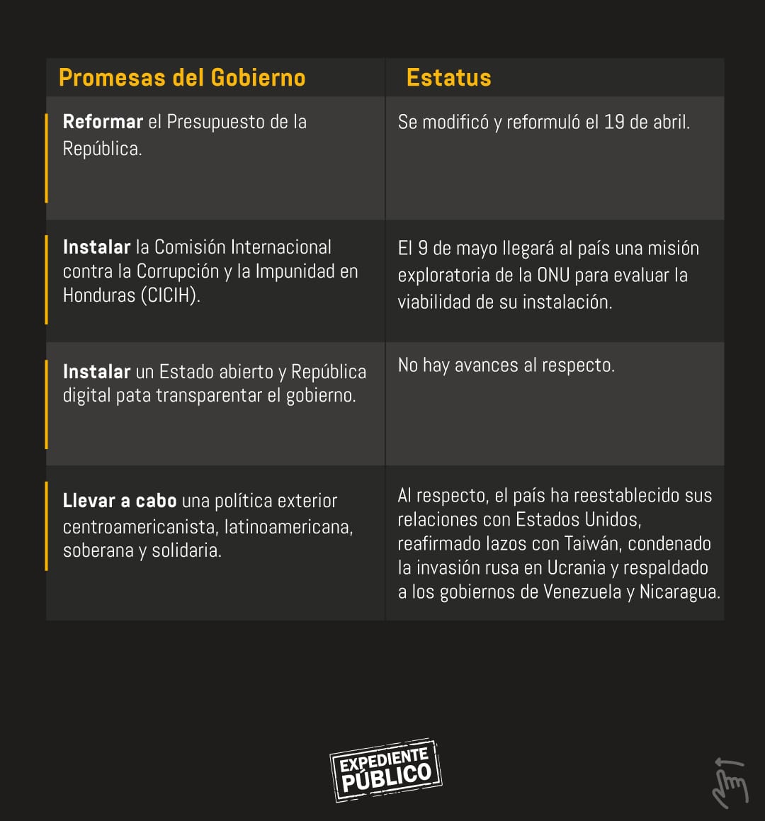 Luego de 12 años de gobierno del Partido Nacional, donde las denuncias por corrupción estuvieron a la orden del día, una de las promesas de campaña de la actual presidenta Xiomara Castro fue desmantelar las estructuras que favorecieron la sustracción de recursos estatales. Sin embargo, tras sus primeros cien días de gobierno, aún falta todo por hacer.
