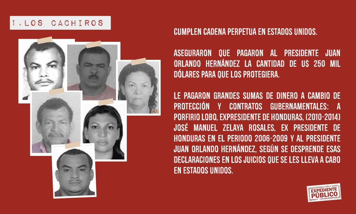 Asimismo, en el caso del grupo “Los Cachiros” que cumplen cadena perpetua en Estados Unidos, aseguraron que pagaron al presidente Hernández la cantidad de 250 mil dólares para que los protegiera.
