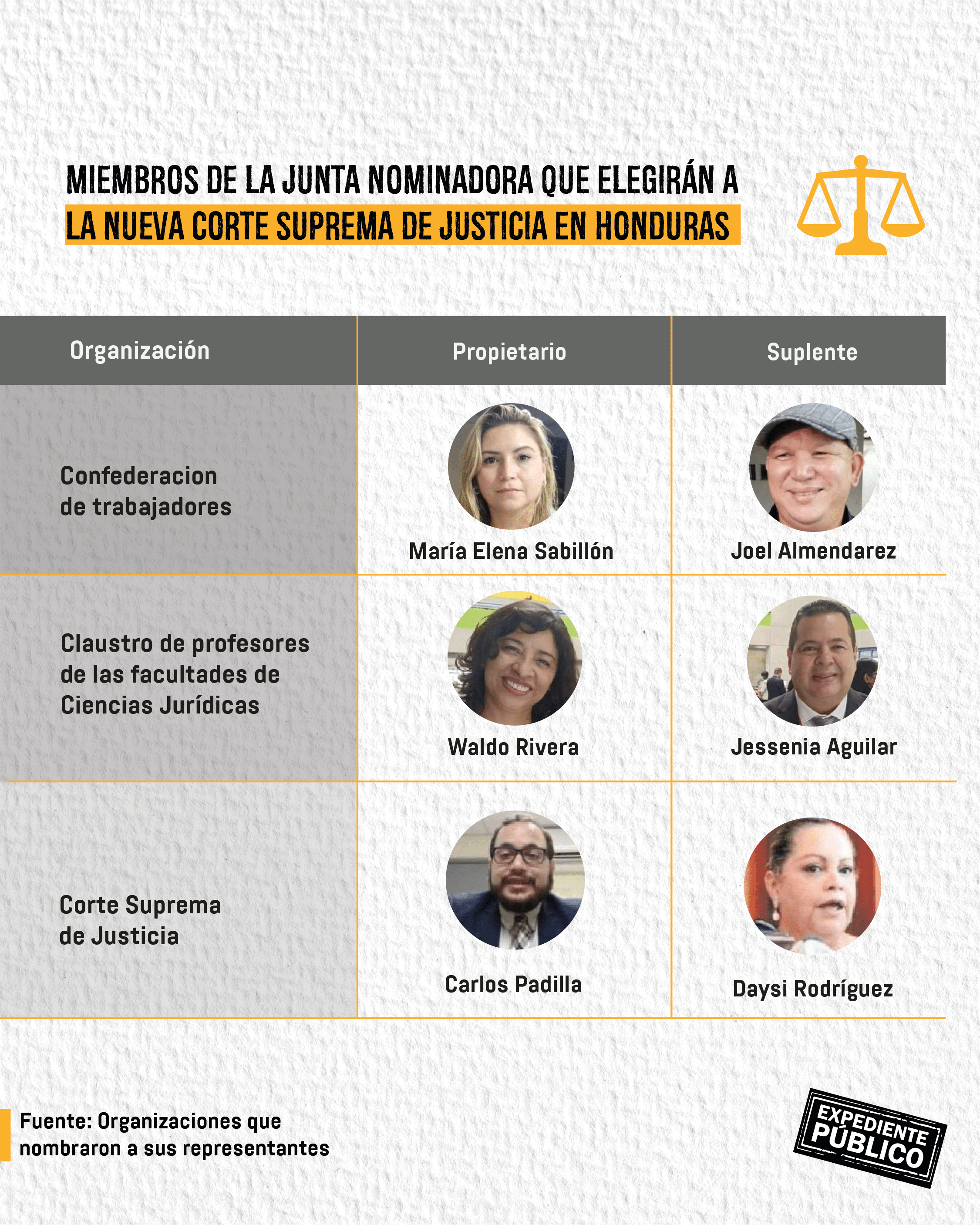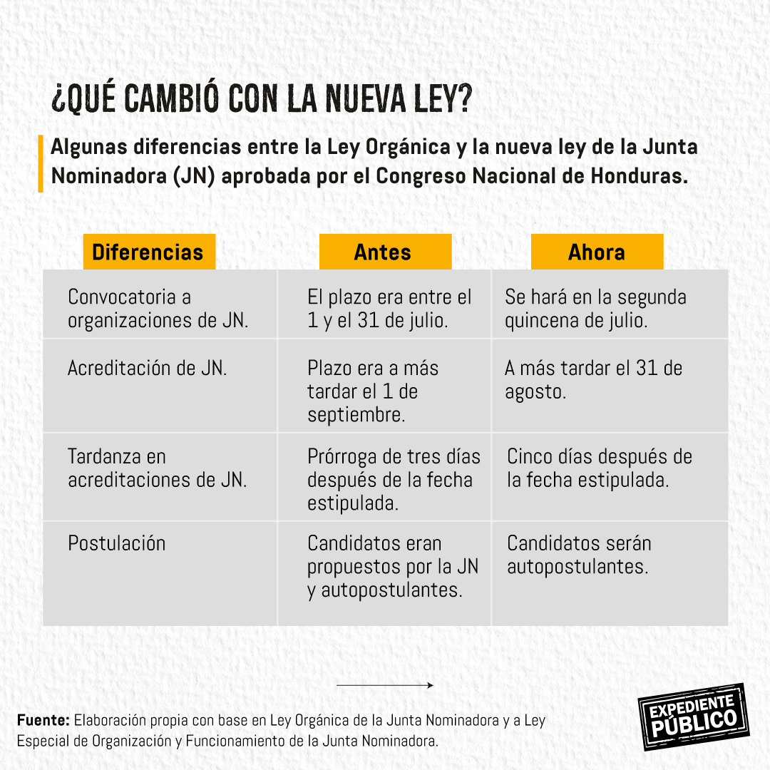 “Hay ciertos miembros de la Junta Nominadora que fueron electos legítimamente, pero hay otros que están viciados”, dijo a Expediente Público, sin especificar nombres, la diputada por el Partido Nacional (hoy en la oposición) Tania Pinto.