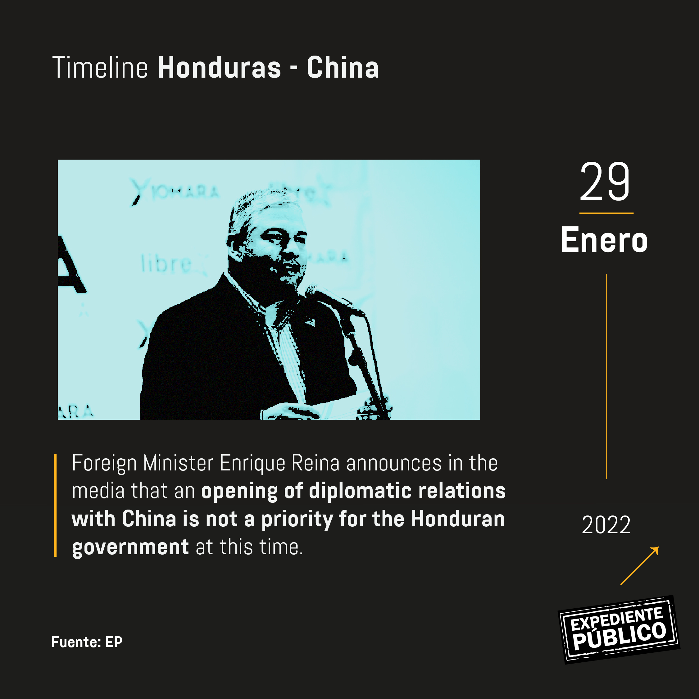 “The idea is obviously to search for mechanisms to improve investment, trade, [etc.] If we have risen to power, it is to do good things for Honduras and for that reason, we must look for ways to better benefit the country using all the countries in the world. In this case, China is a reality for us, as we must look for opportunities for the Honduran population,” Foreign Minister Enrique Reina said on a television show that aired on March 14.