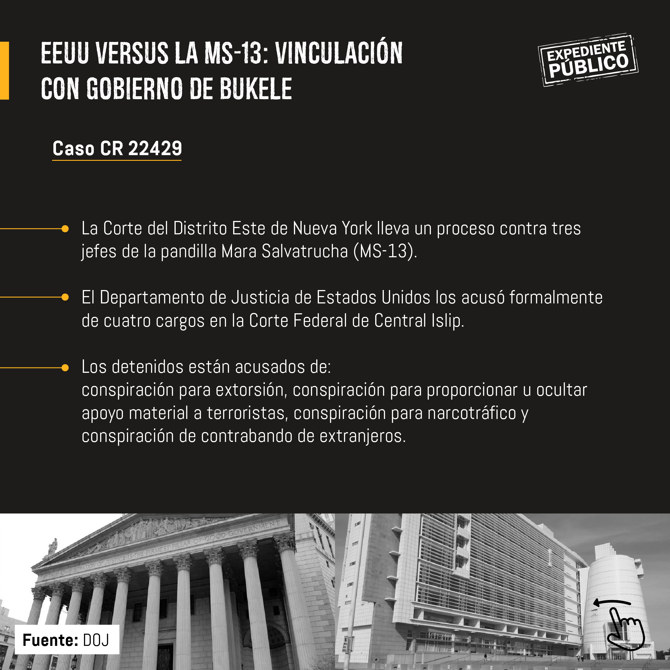 “Esto revelado por la Fiscalía de NY pone en entredicho la supuesta ‘desarticulación de las maras’, pues demuestra grandes negociaciones políticas al más alto nivel, y entonces ¿será que no esté pactado fingir una desarticulación en el Estado de excepción?”, vaticina un investigador privado a Expediente Público.