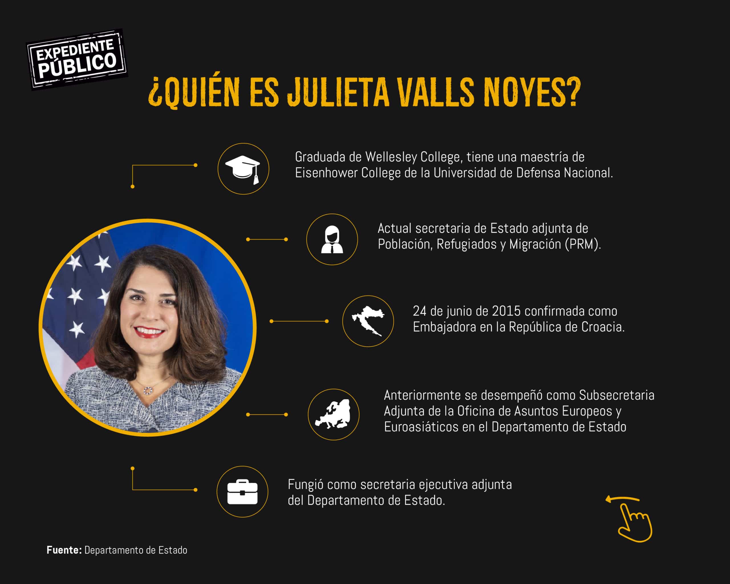 La subsecretaria de la oficina de Población, Refugiados y Migración del Departamento de Estado estadounidense, Julieta Valls Noyes, llegó este miércoles 26 de abril a Costa Rica donde se reunió con altos funcionarios gubernamentales para estrechar lazos y abordar los esfuerzos conjuntos en temas que atañen a ambas naciones como es la migración irregular y la protección de refugiados, informó el Departamento de Estado.