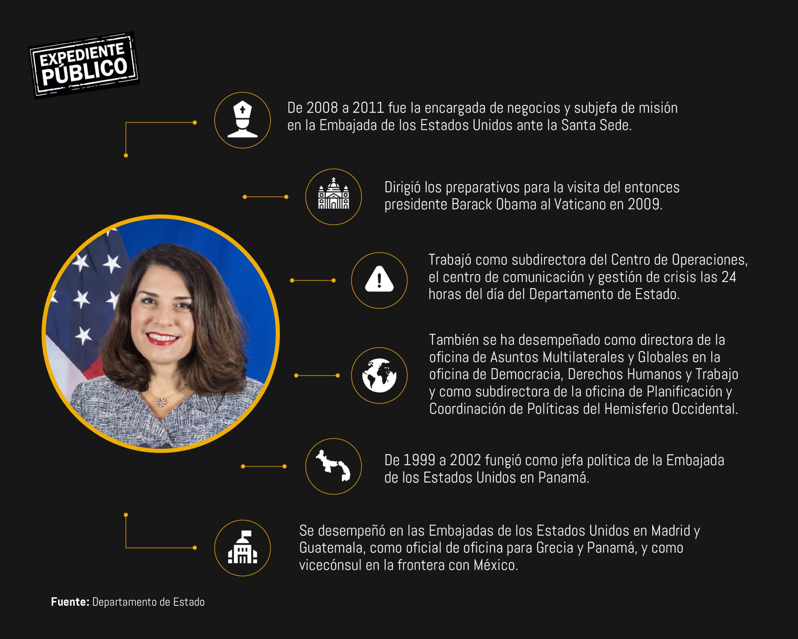 Noyes aprovecha la gira por ambos países de la región para promover la candidatura de Pop, quien fue nominada por el presidente Joe Biden para el alto cargo en la OIM, un organismo de las Naciones Unidas.