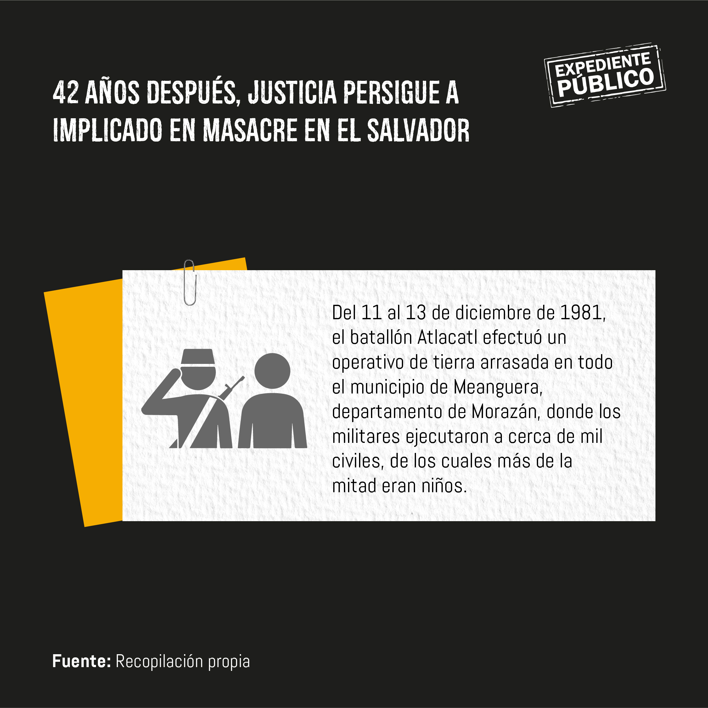 La captura realizada por agentes del Servicio de Control de Inmigración y Aduanas (ICE, por sus siglas en inglés) y de la Oficina de Detención y Deportación (ERO) contra un militar retirado salvadoreño que vivía en EE. UU. desde 2014, logró lo que en El Salvador es imposible desde hace 42 años: someter ante la justicia a uno de los implicados en un operativo militar que cobró la vida de cerca de mil civiles.