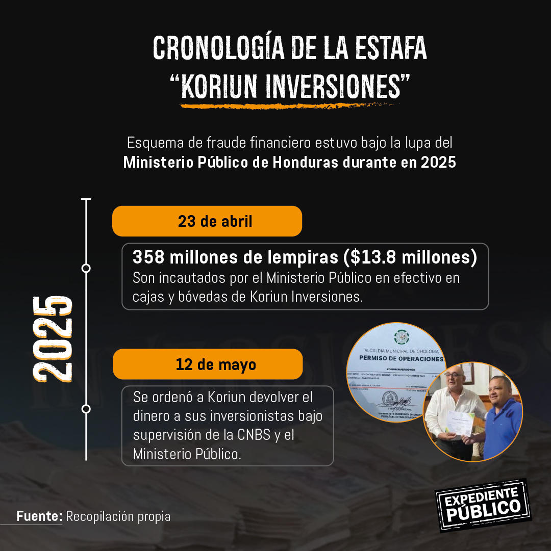 La empresa Koriun se anunciaba desde 2019 a través de las redes sociales prometiendo éxito financiero fácil, ofrecía a sus inversionistas un 5% de retorno semanal y la duplicación del capital en menos de un año lo que sedujo más de 35,000 personas en al menos siete departamentos de Honduras.