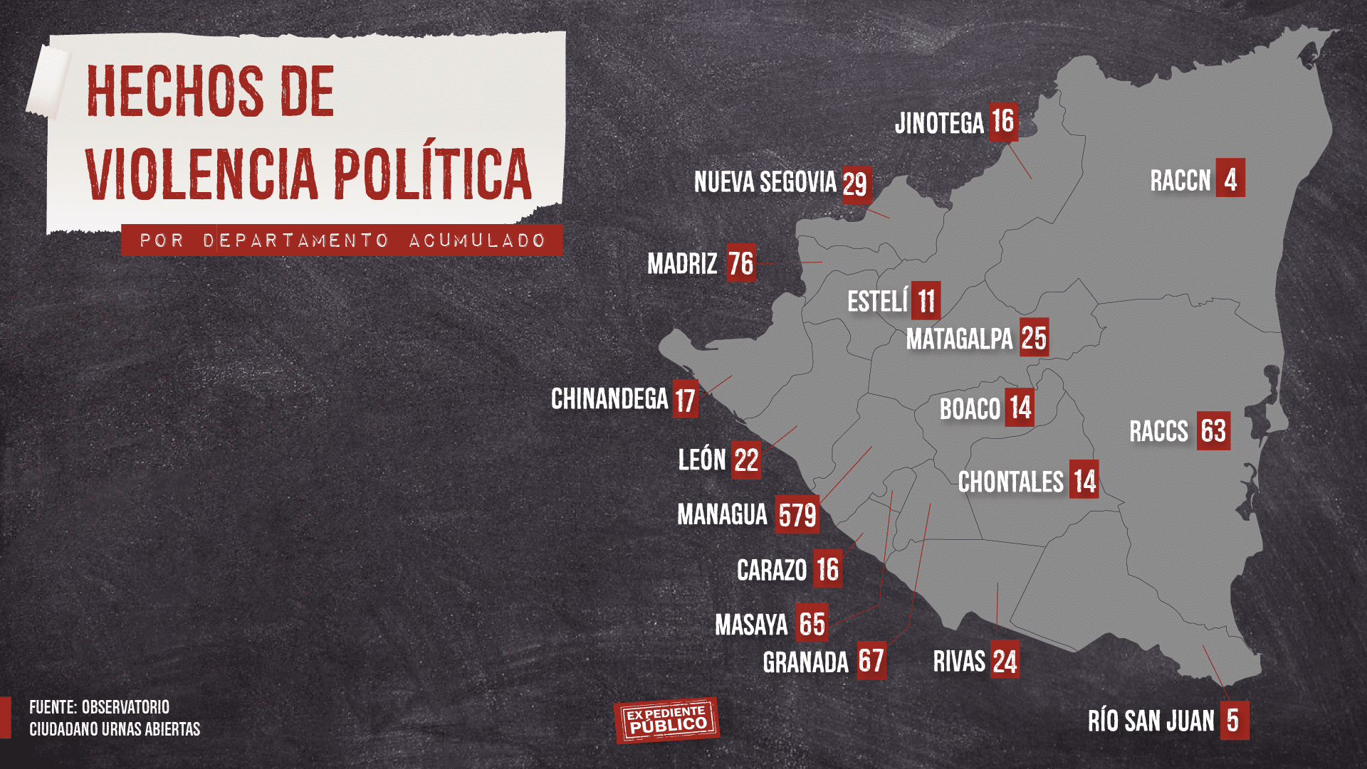 En medio de un polémico proceso electoral en Nicaragua, donde hasta ahora el mandatario Daniel Ortega es el único candidato a la presidencia por cuarta vez consecutiva por el partido de gobierno Frente Sandinista de Liberación Nacional (FSLN), la violencia política se recrudece. 26 líderes de la oposición llevan más de un mes de haber sido detenidos y estar incomunicados de sus familiares, las protestas en las calles están prohibidas, los partidos políticos de oposición de contrapeso han sido anulados y cientos de crímenes de lesa humanidad siguen en la impunidad.