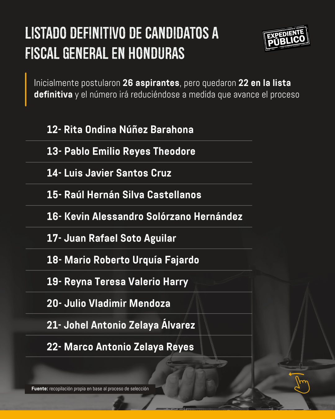 «Esa es la preocupación. En los corridos, en las salas de la Corte Suprema, todo mundo habla del tema: “es que ya se repartieron la fiscalía, la fiscalía adjunta y el director de fiscales y cada uno está colocando sus peones ahí para autoprotegerse y autorresguardarse”», declaró a Expediente Público el abogado Saúl Bueso, quien integra el equipo legal de la organización C-Libre.