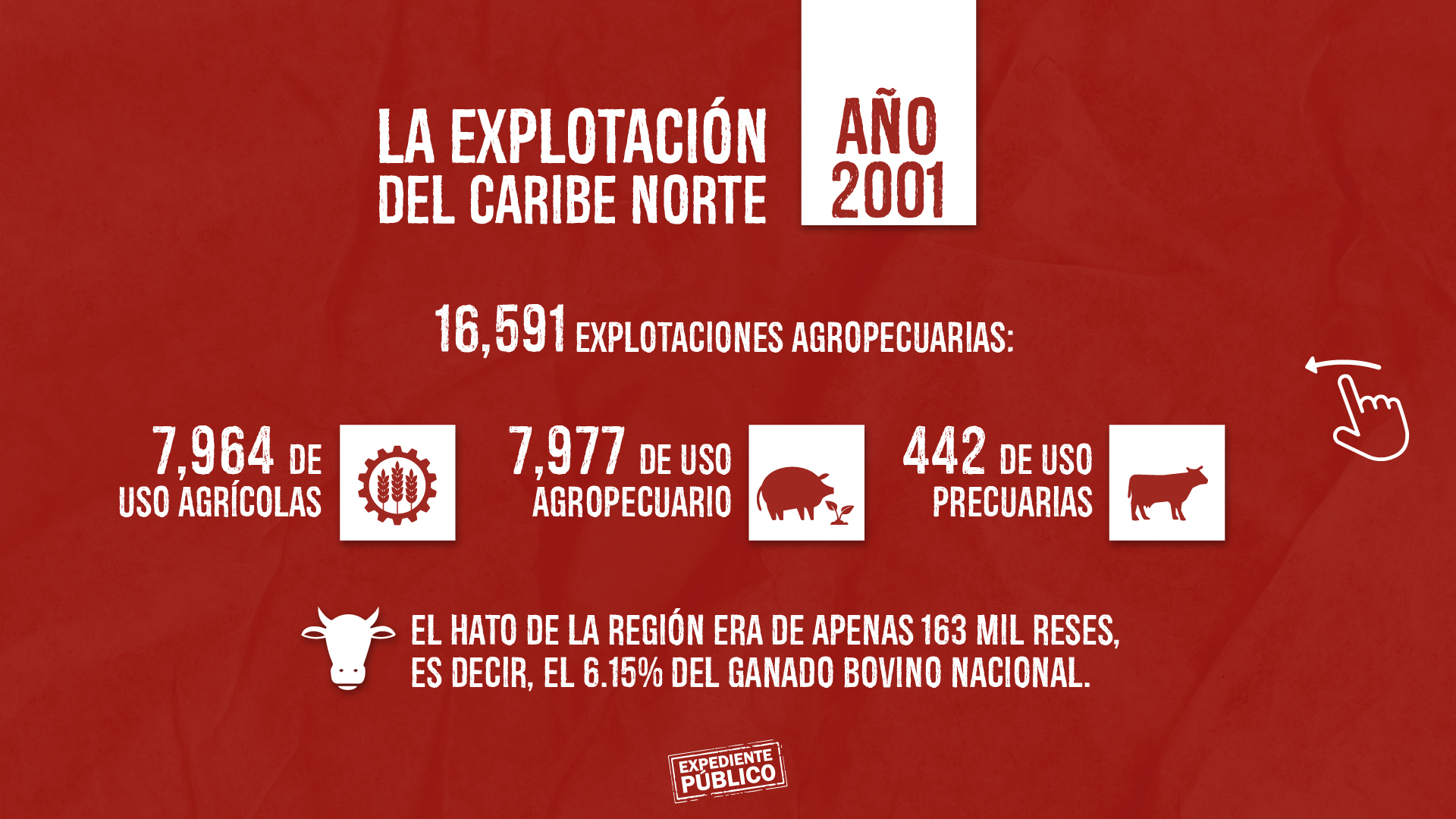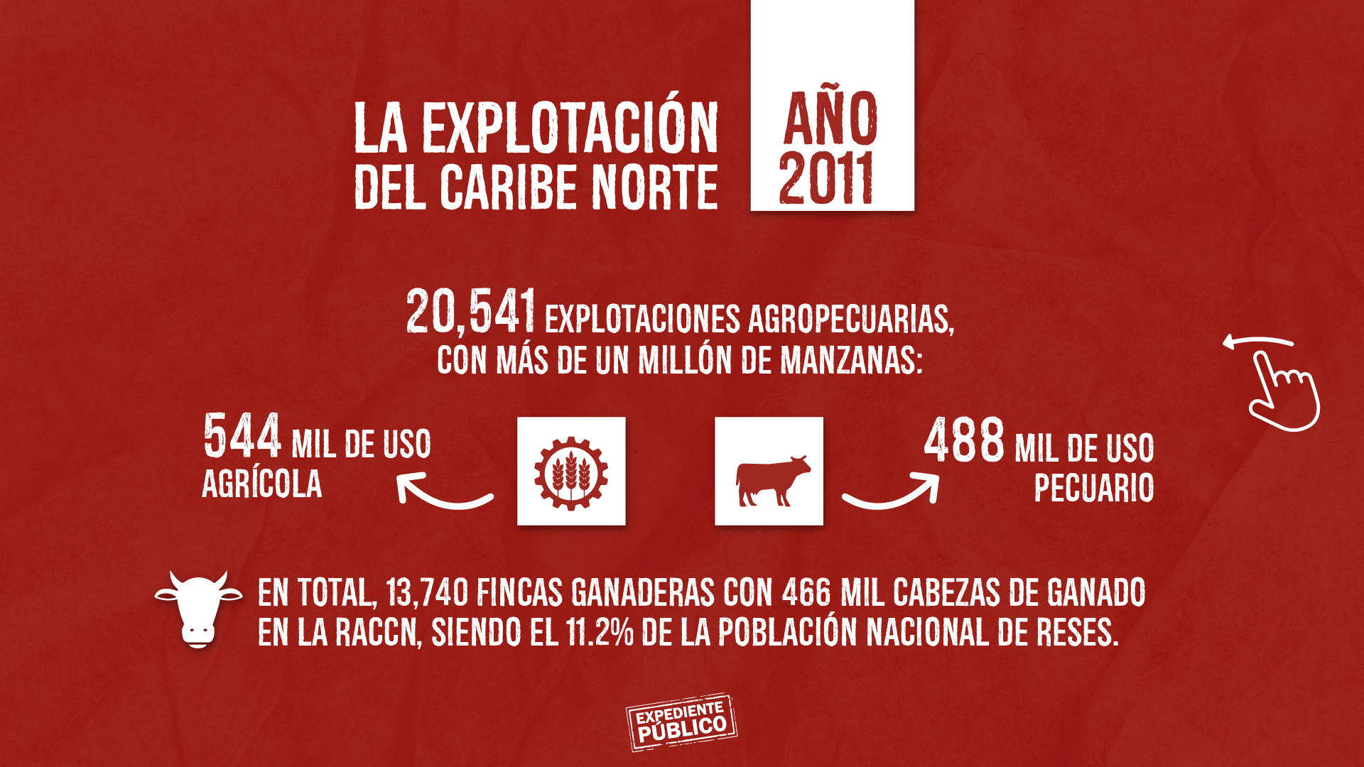 El último censo agropecuario de 2011 indicaba que había 20,541 explotaciones agropecuarios en el Caribe Norte, con más de un millón de manzanas: 544 mil de uso agrícola y 486 mil de uso pecuario. En total, había 13,740 fincas ganaderas con 466 mil cabezas de ganado en la RACCN siendo el hato nacional de reses de 4.1 millón, es decir, la región representaba el 11.2% de la población nacional de reses, según el Censo. El censo anterior de 2001 eran menos explotaciones en la región, 16,591 en total, divididas en 7,964 agrícolas, 7,977 agropecuarias y 442 pecuarias, en esa época el hato de la región era de apenas 163 mil reses, es decir, el 6.15% del ganado bovino nacional.