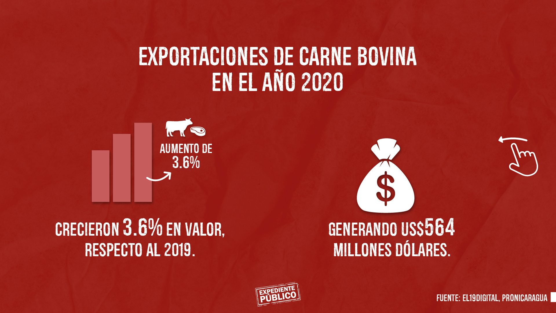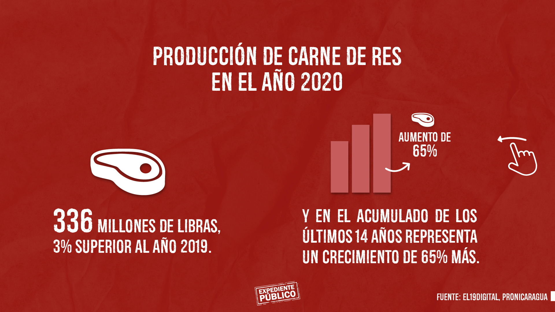 La producción de carne de res en el año 2020 fue de 336 millones de libras, 3% superior al año 2019, y en el acumulado de los últimos 14 años representa un crecimiento de 65. Las exportaciones de carne bovina en el 2020, crecieron 3.6% en valor, respecto al 2019, generando US$564 millones dólares, revelan datos oficiales.