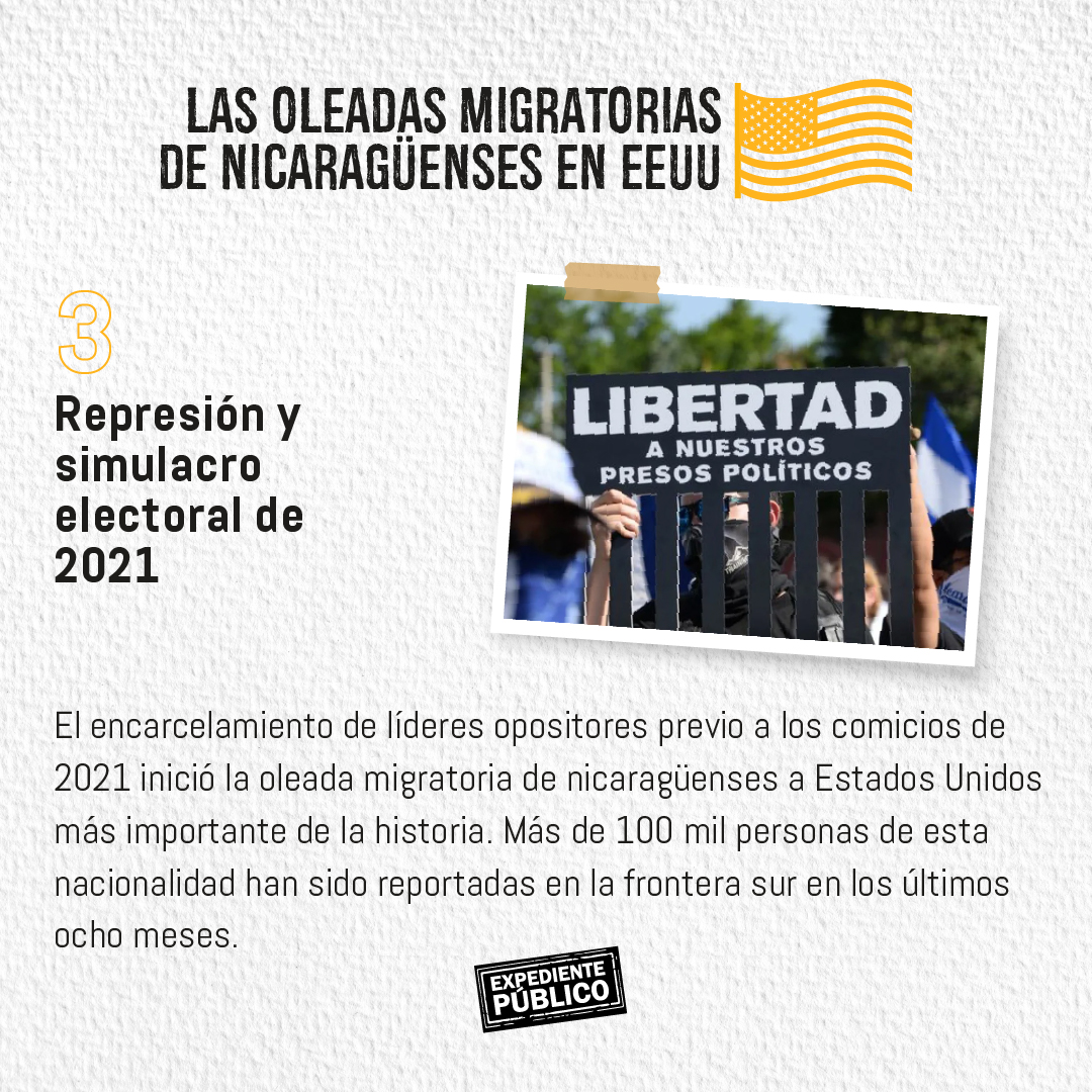 Estados Unidos se convirtió desde el 2021 en el principal destino de migración y refugio de los nicaragüenses. Entre octubre de 2021 y mayo de 2022, la patrulla fronteriza reportó 110,577 encuentros en el borde limítrofe con México, duplicando la cifra del año fiscal anterior completo (octubre 2020 a septiembre 2021), cuando se registraron 50,109.