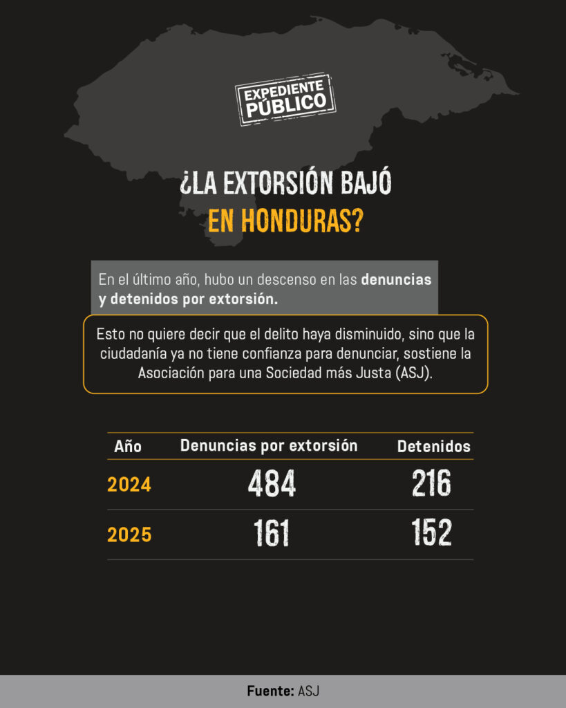 A pesar de los operativos, los datos de la Asociación para una Sociedad más Justa (ASJ) revelan una realidad cruda. En 2025, el 11% de los hogares hondureños reportaron ser víctimas de extorsión.
