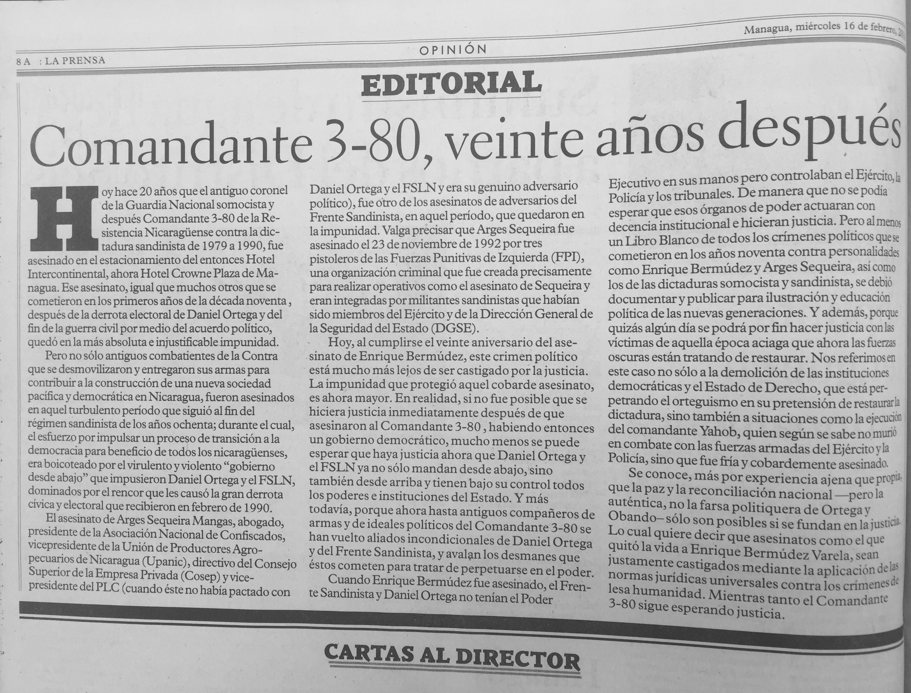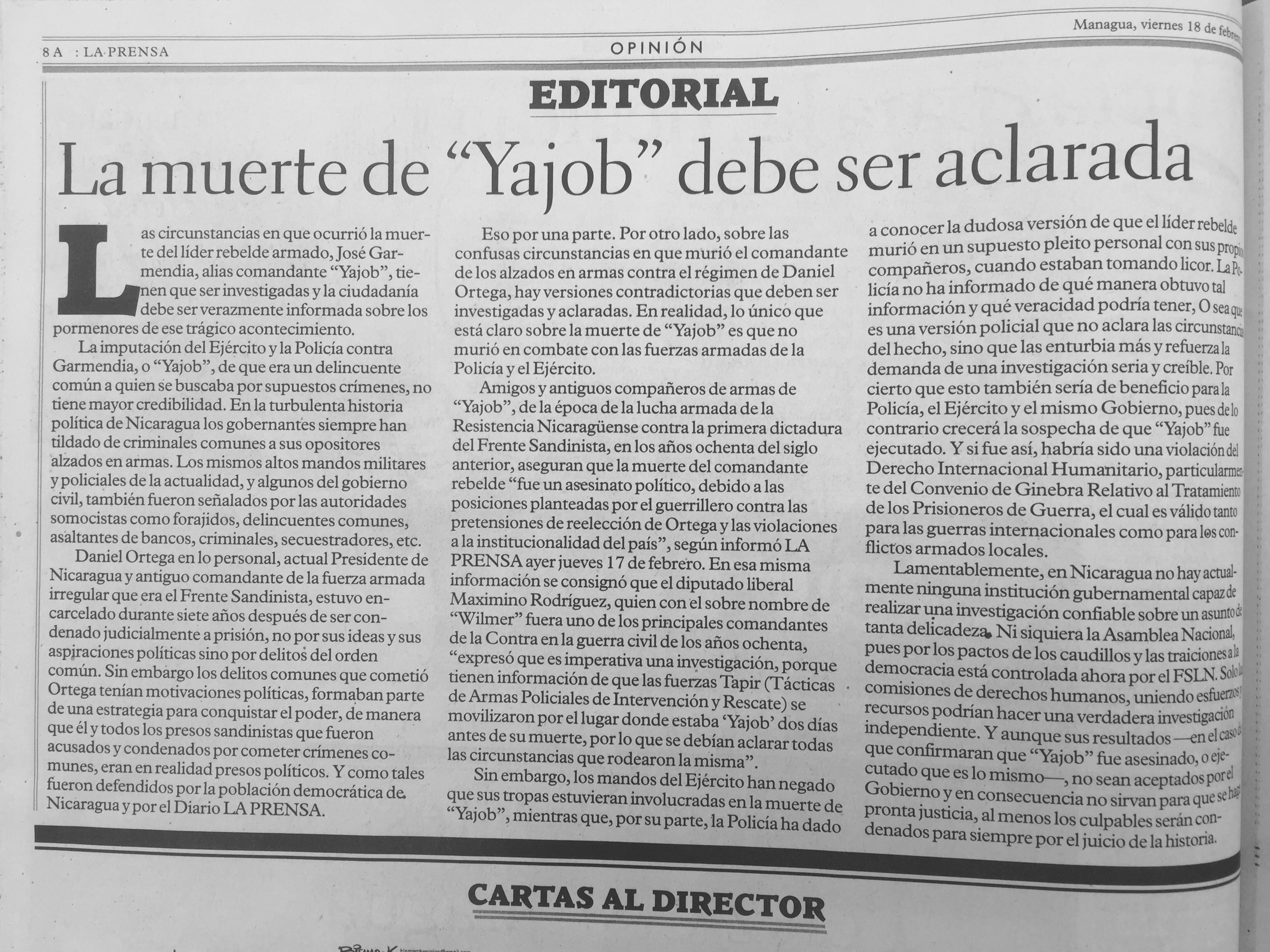 Lo cierto es que la muerte del líder antisandinista no fue un hecho aislado.
