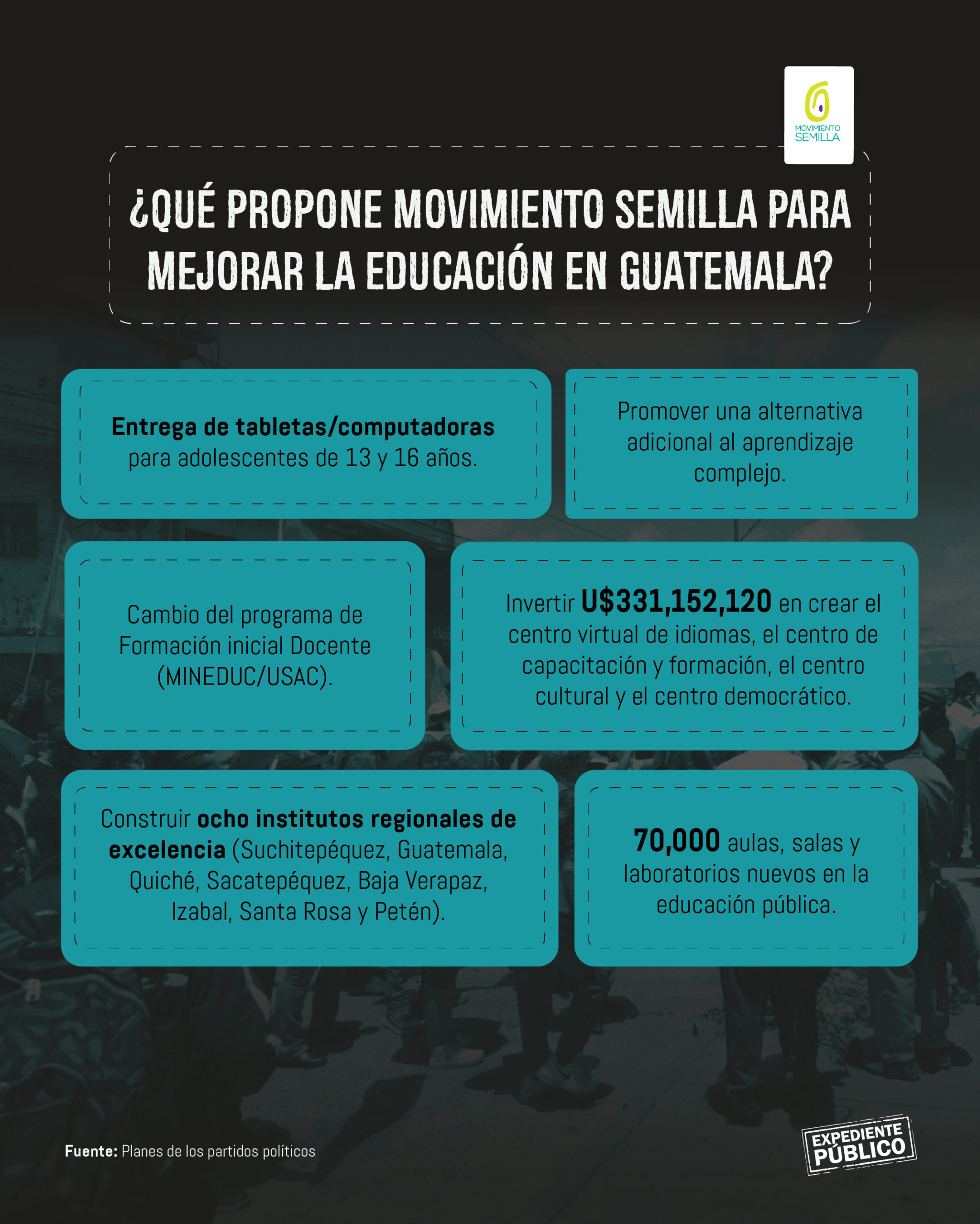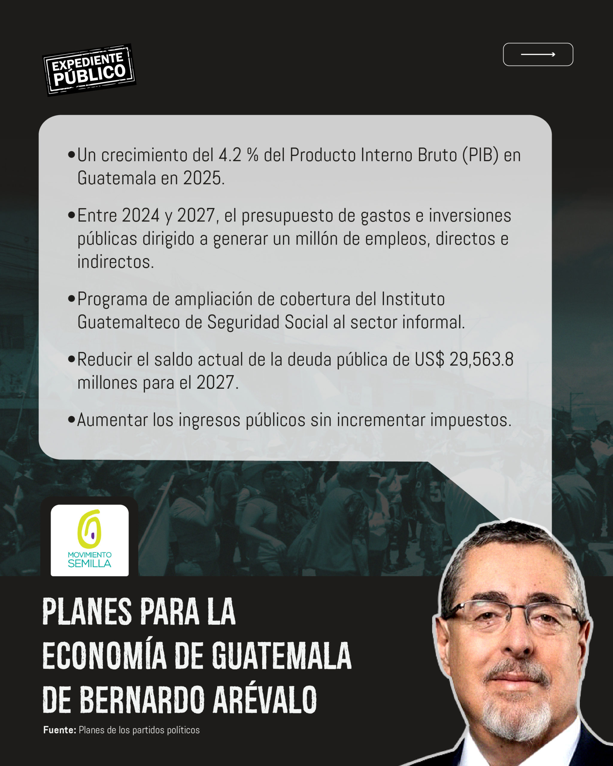 En cuanto a las propuestas del Movimiento Semilla, el experto afirmó que apuntan a medidas que se necesitan con urgencia en Guatemala, sin embargo “debe de ir acompañado de un plan de ejecución”.