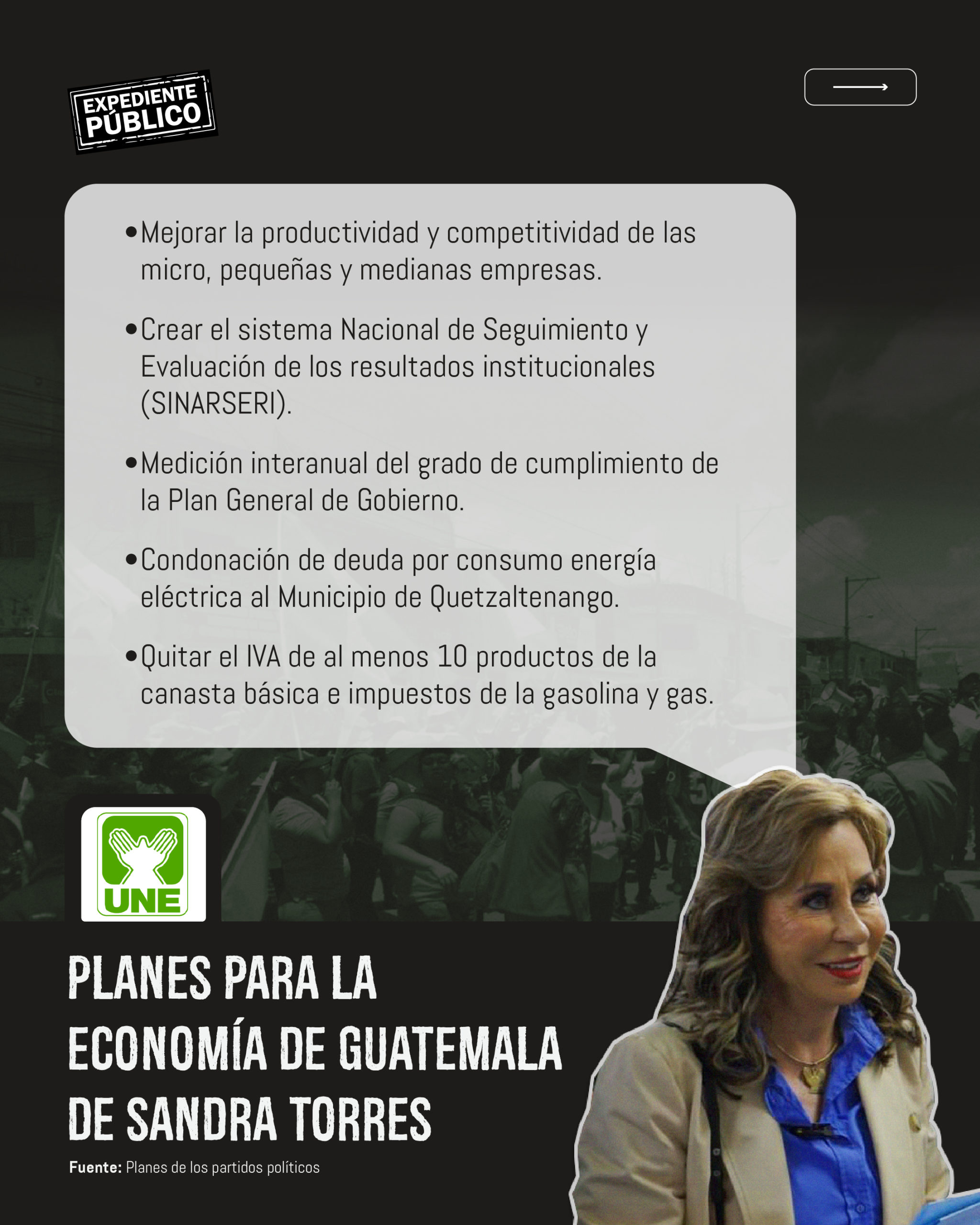 Mientras que la UNE, “generaría un déficit terrible” o “enfadaría” a los guatemaltecos, ya que, con sus propuestas recaudaría menos impuestos, lo que sería un problema debido a que el plan contempla subsidios y bonos.