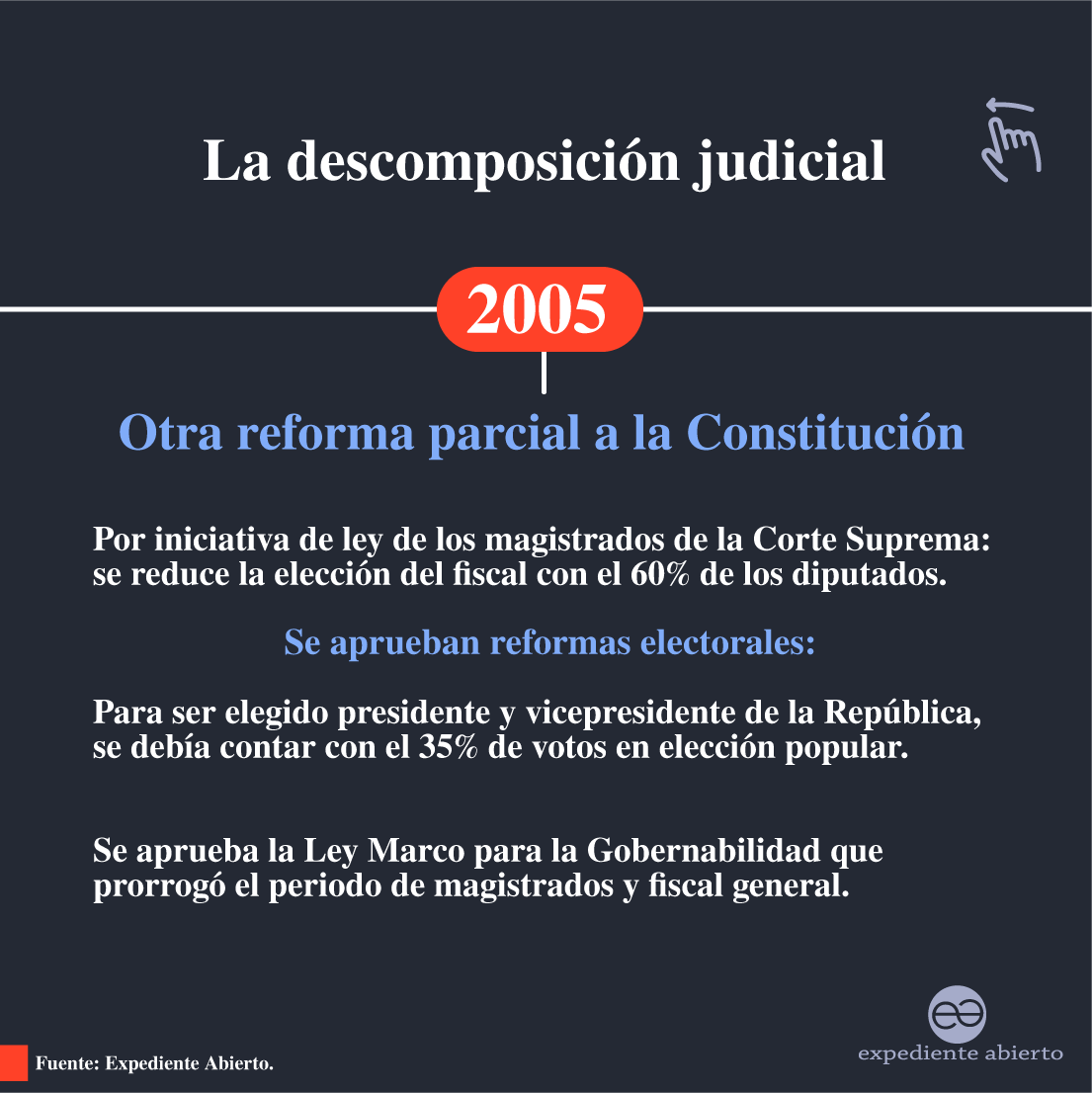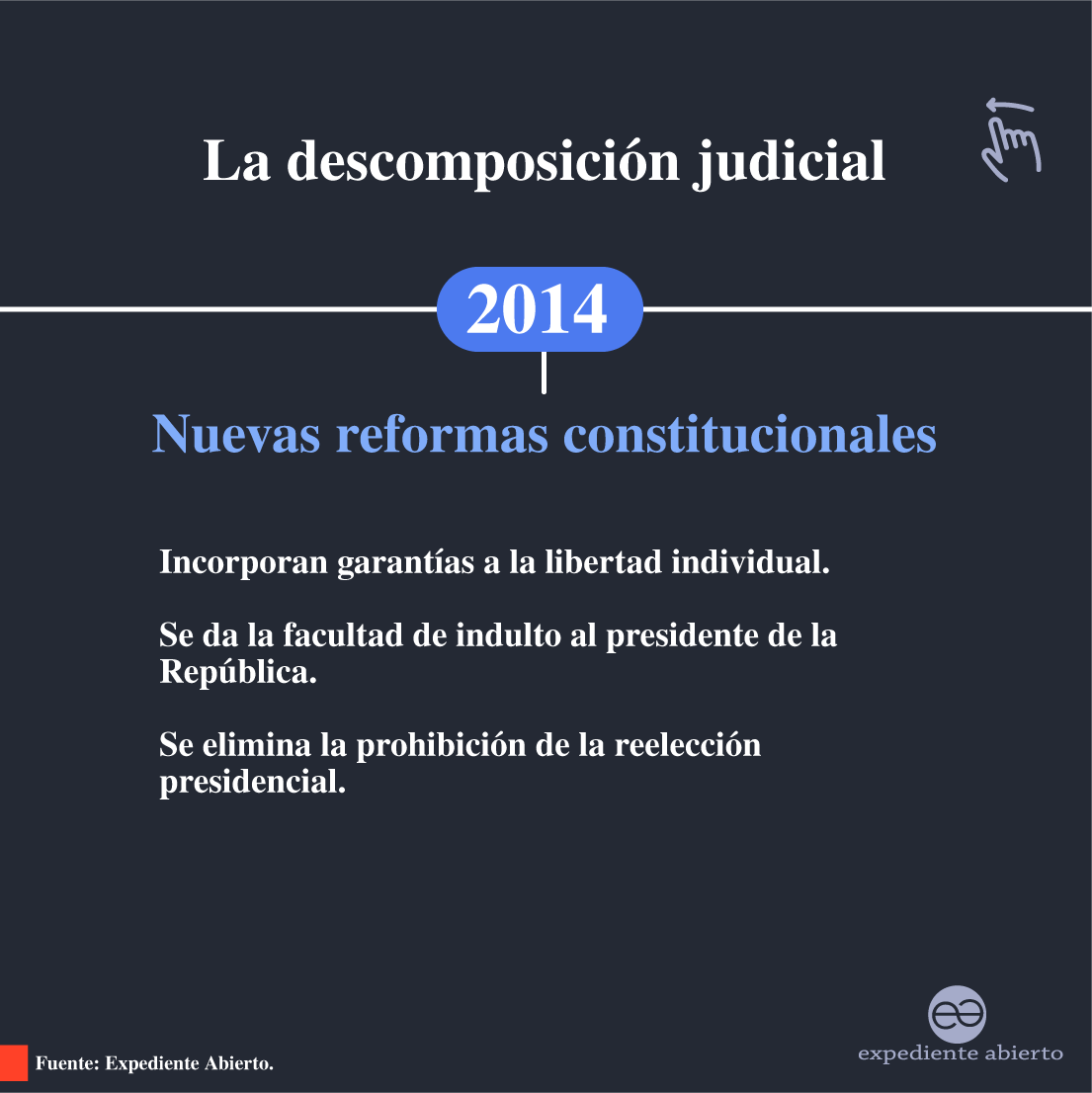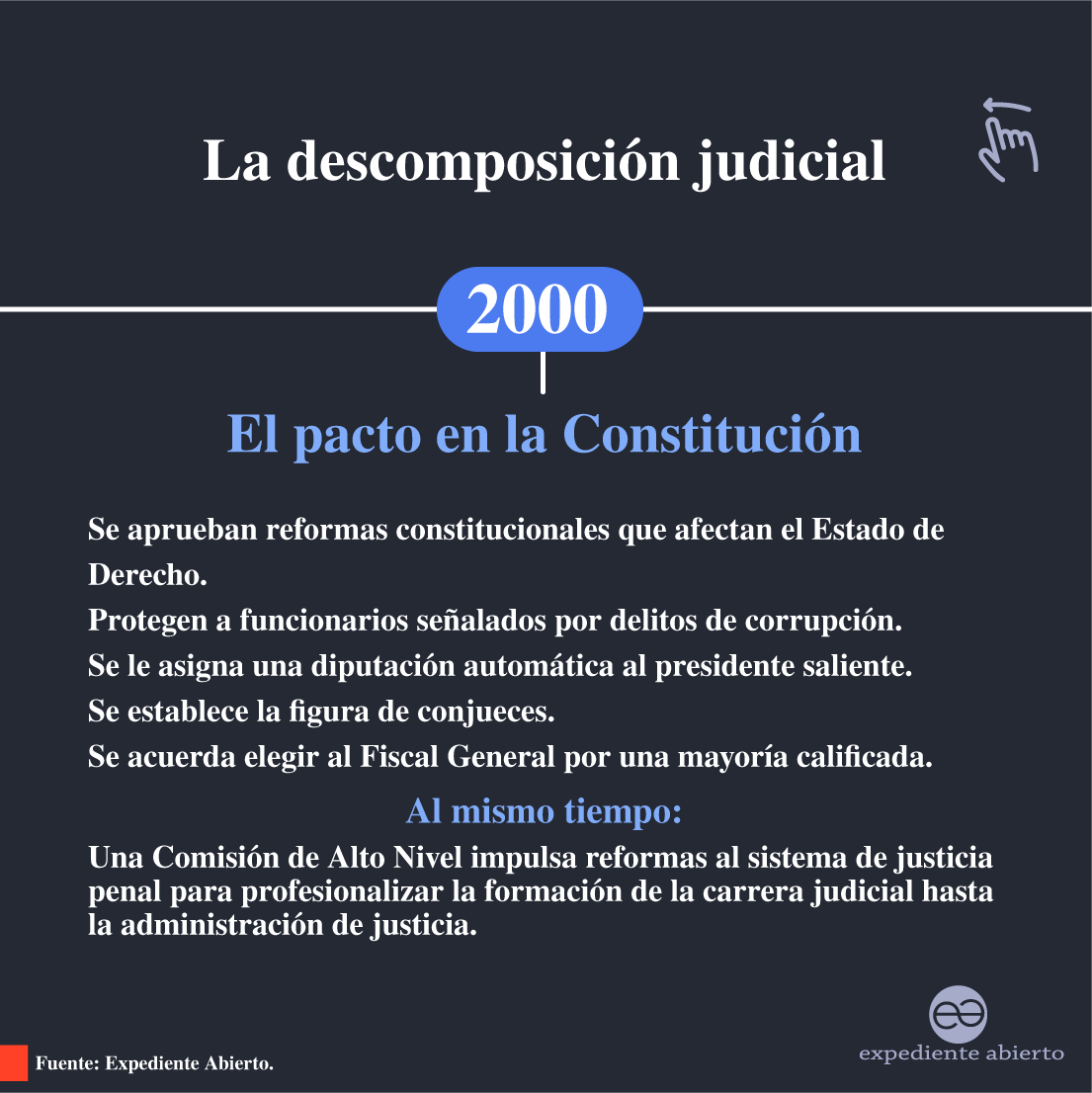 Expediente Abierto propone en su investigación una reforma al número de magistrados de la Corte Suprema de Justicia, para tener una representatividad proporcional de ciudadanos que demandan acceso a la justicia. Además, que sean nombrados por propuestas y consenso de diferentes sectores: asociaciones de abogados, defensores de derechos humanos, académicos, facultades de derecho; debiéndose estar prohibido el pertenecer a partido político o asociación política, so pena de ser sancionado de forma administrativa y penalmente. Esto debe ser aplicable para la elección de fiscal general y fiscal general adjunto. Se debe prohibir la reelección para este tipo de cargos magistrados y fiscales.