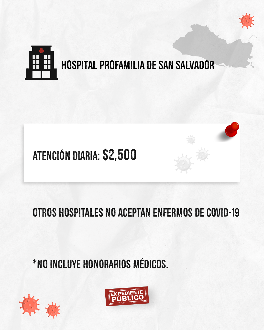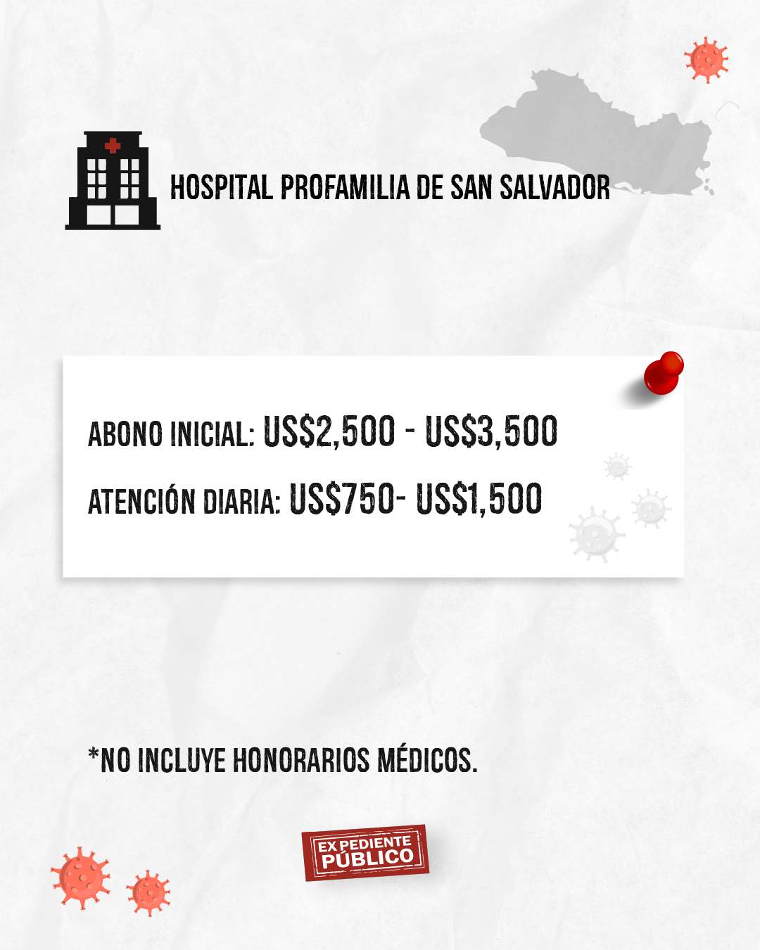 En el hospital Profamilia de San Salvador se les pide a las familias de los pacientes un depósito que va de entre $2500 y $3500. “A diario son de 750 a 1500 dólares. La cama, medicamentos y honorarios, son aparte”, explicó un médico del referido hospital.