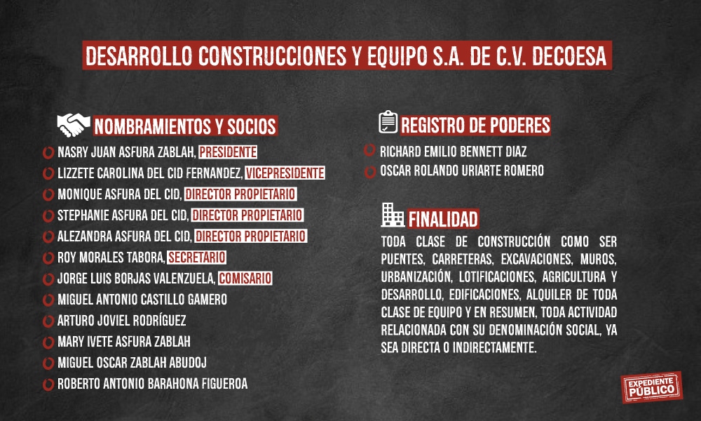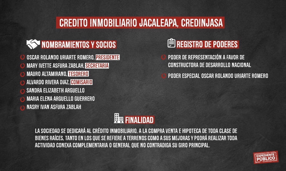 Las cuentas de las empresas investigadas donde fueron a parar los fondos son Agac de Centroamérica, Crédito Inmobiliario Jacaleapa, Cosemsa, Decoesa, Cementos y Codena. De acuerdo a las actas constitutivas de esas sociedades mercantiles que tuvo acceso Expediente Público, el alcalde capitalino Nasry Asfura Zablah figura como socio. (Descargue).