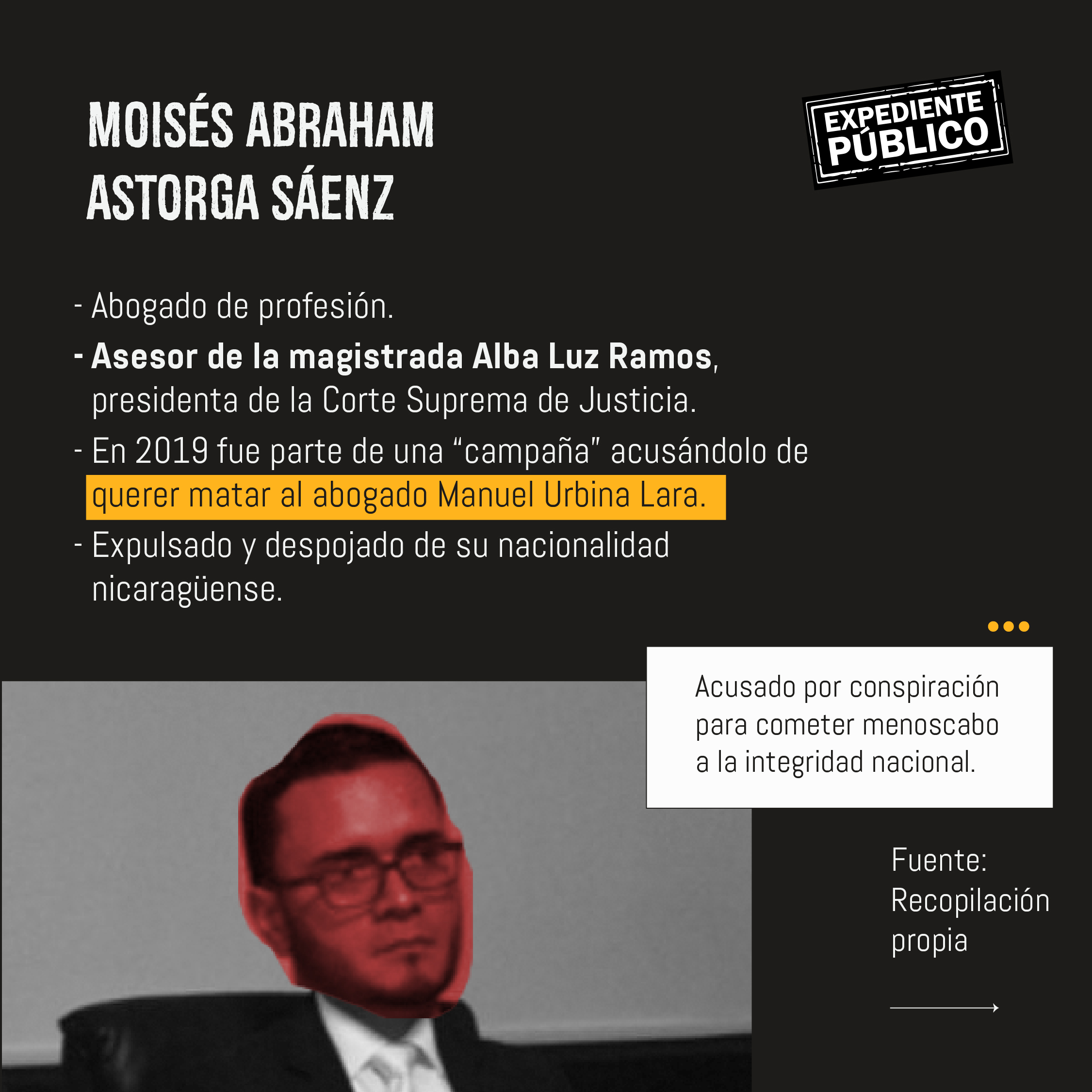 Astorga fue acusado el 21 de ese mes por conspiración, junto con los hermanos María y Hans Camacho, la primera asistente de la presidente de la CSJ, Alba Luz Ramos y el segundo responsable del área de Informática en el Tribunal Nacional Laboral de Apelaciones.