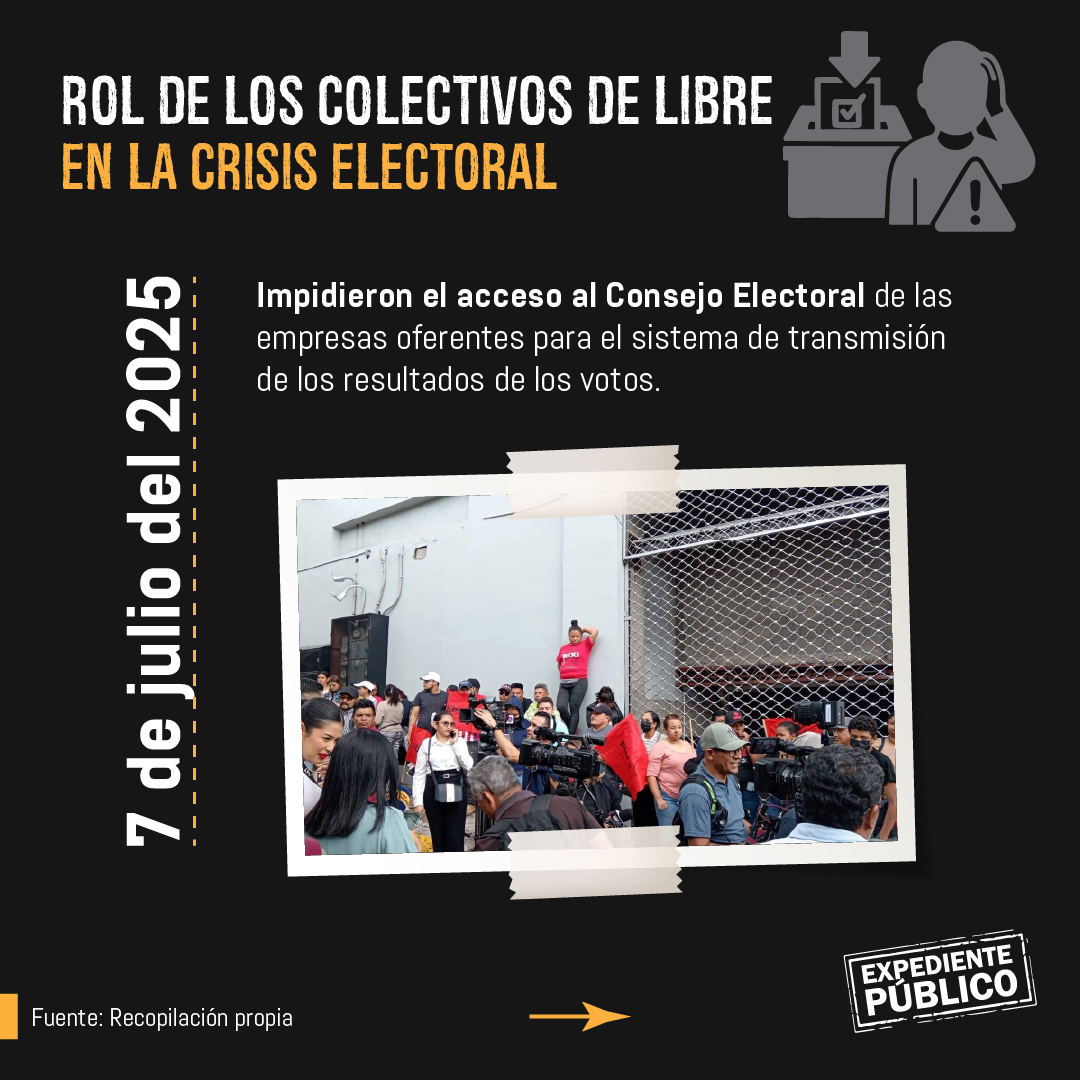 Manuel Zelaya estuvo detrás de la irrupción de los colectivos del oficialismo en actos importantes recientes del CNE. Uno de ellos fue en la recepción de ofertas para el proceso de adjudicación del sistema de Transmisión de Resultados Electorales Preliminares (TREP), en las inmediaciones del CNE, el 7 de julio pasado.