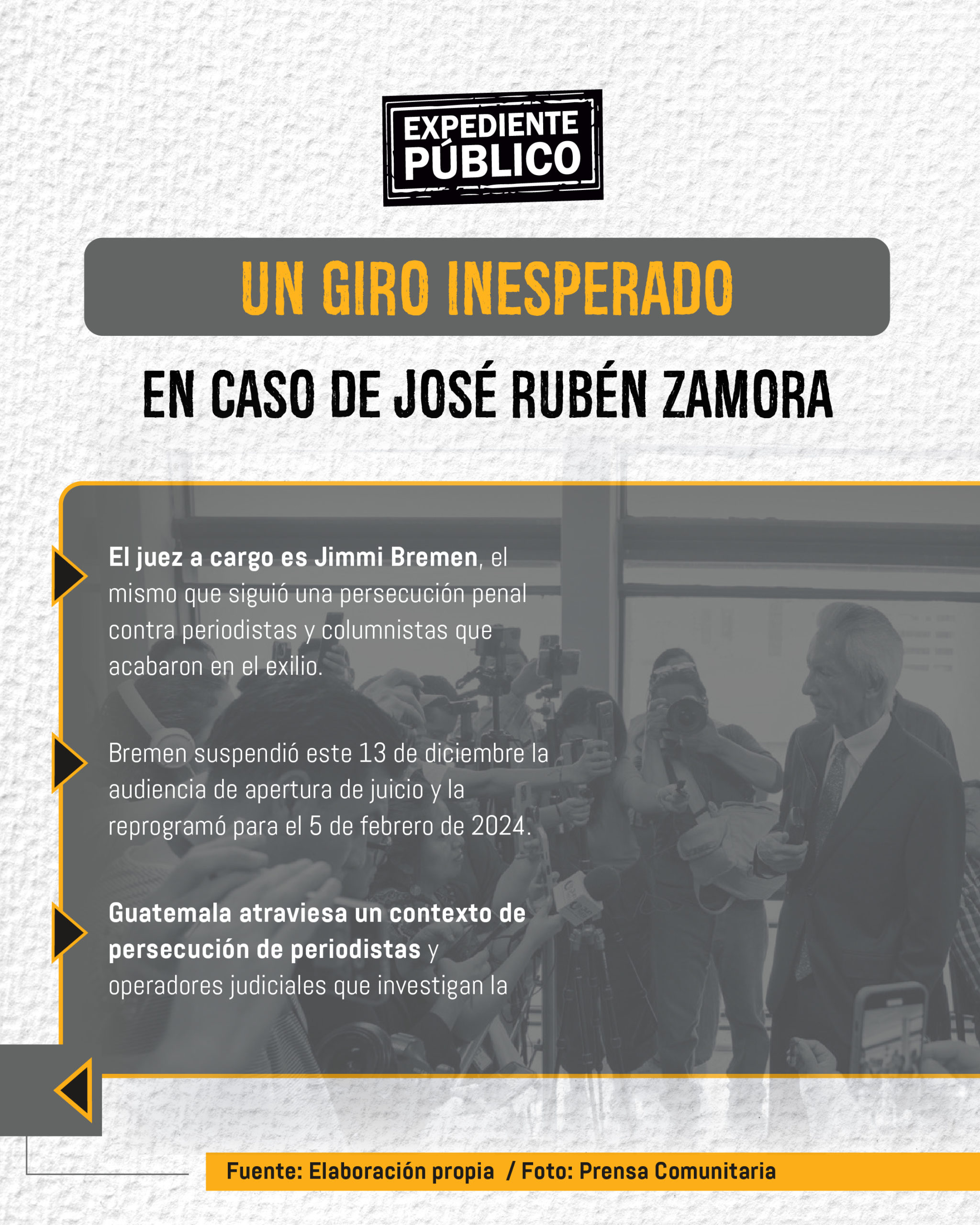 El caso, que será ventilado en el Tribunal Noveno de Sentencia Penal, Narcoactividad y Delitos Contra el Ambiente del departamento de Guatemala, será conducido por el juez Jimmi Bremen, el mismo que siguió una persecución penal contra periodistas y columnistas de opinión que acabaron en el exilio.