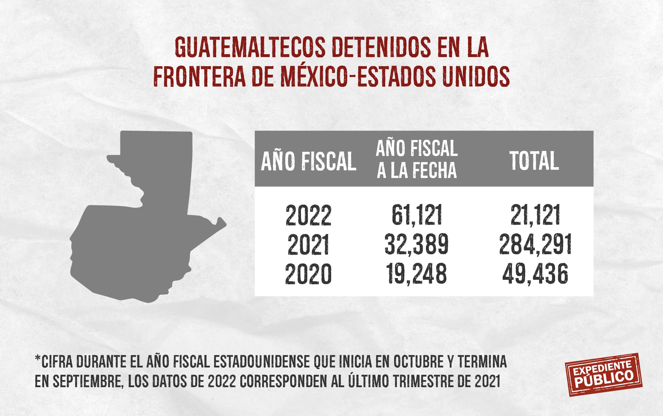 El año fiscal 2020-2021 cerró con 751,158 personas de estos cuatro países entre los 1.73 millones de migrantes detenidos por las autoridades fronterizas; esto significa el 43% del total, mientras que el año fiscal 2019-2020 cerró con 458,088 detenciones de ciudadanos de las naciones que conforman el CA-4 (Acuerdo migratorio entre Nicaragua, Honduras, El Salvador y Guatemala).