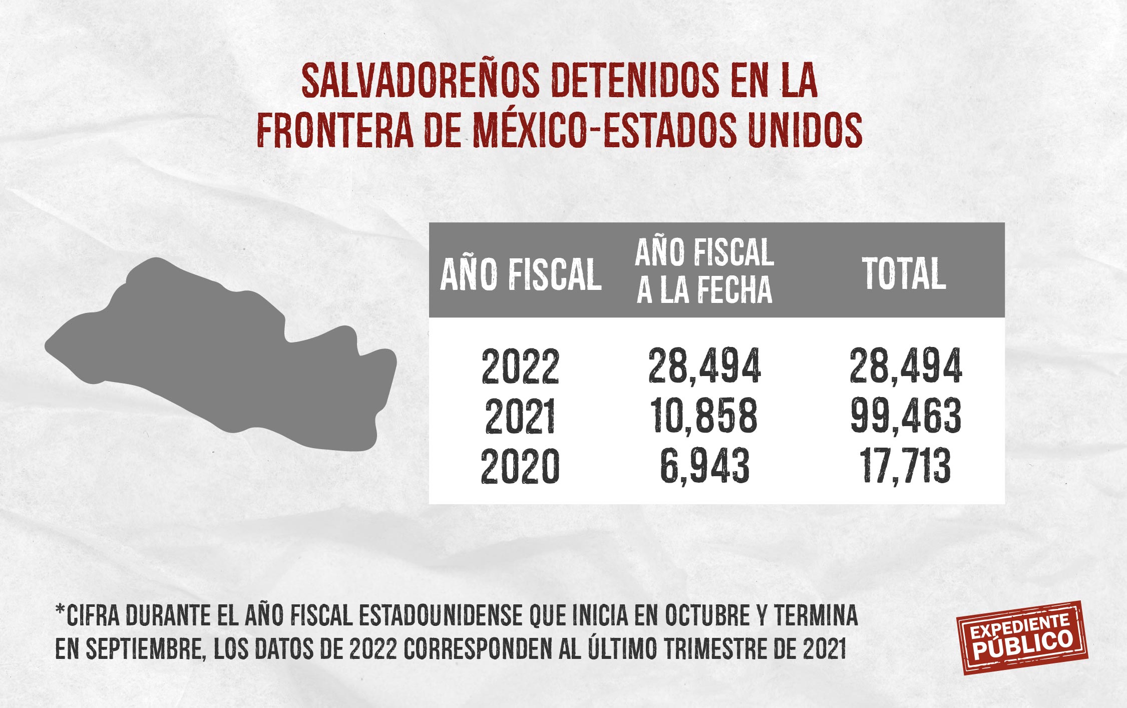 El último trimestre representó un incremento de 138.1% de salvadoreños detenidos en la frontera sur con Estados Unidos, así como un aumento de 130.7% de hondureños y 89.8% de guatemaltecos, en relación al mismo periodo de 2020.