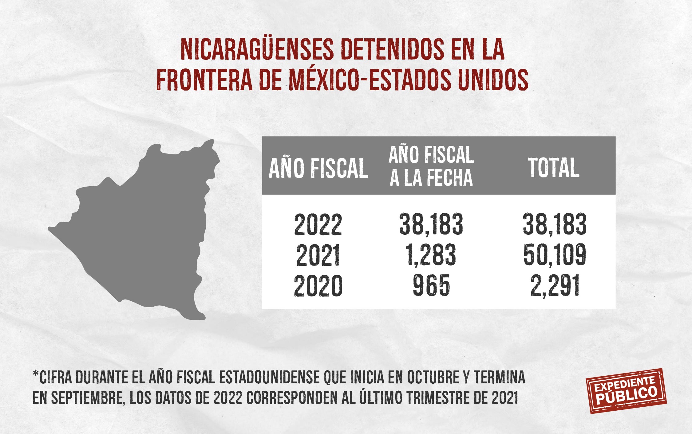 Entre octubre y diciembre de 2020 solo habían cruzado a Estados Unidos y sido detectados por la patrulla fronteriza sur un total de 1,283 ciudadanos de Nicaragua, pero en los mismos meses de 2021 fueron 38,183.