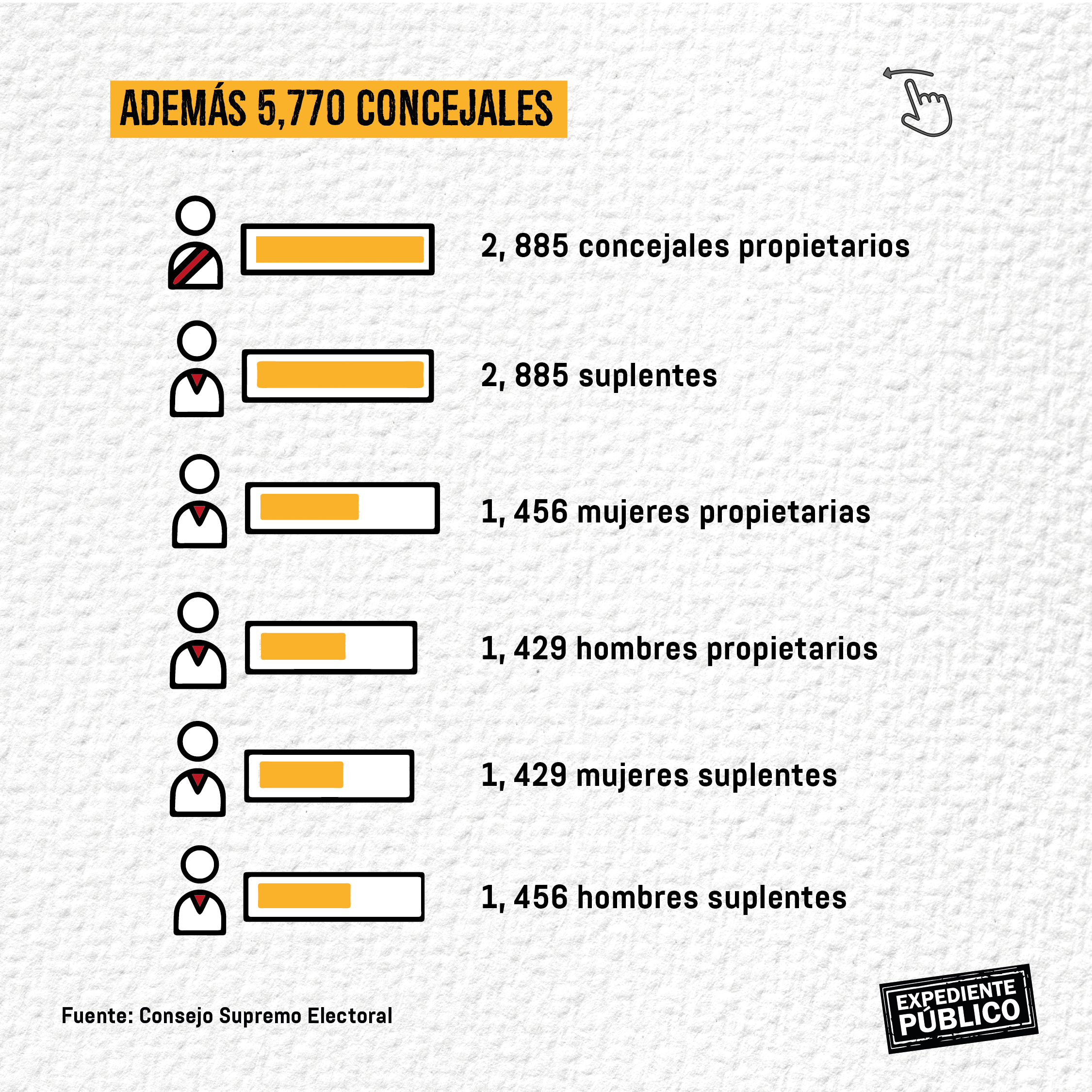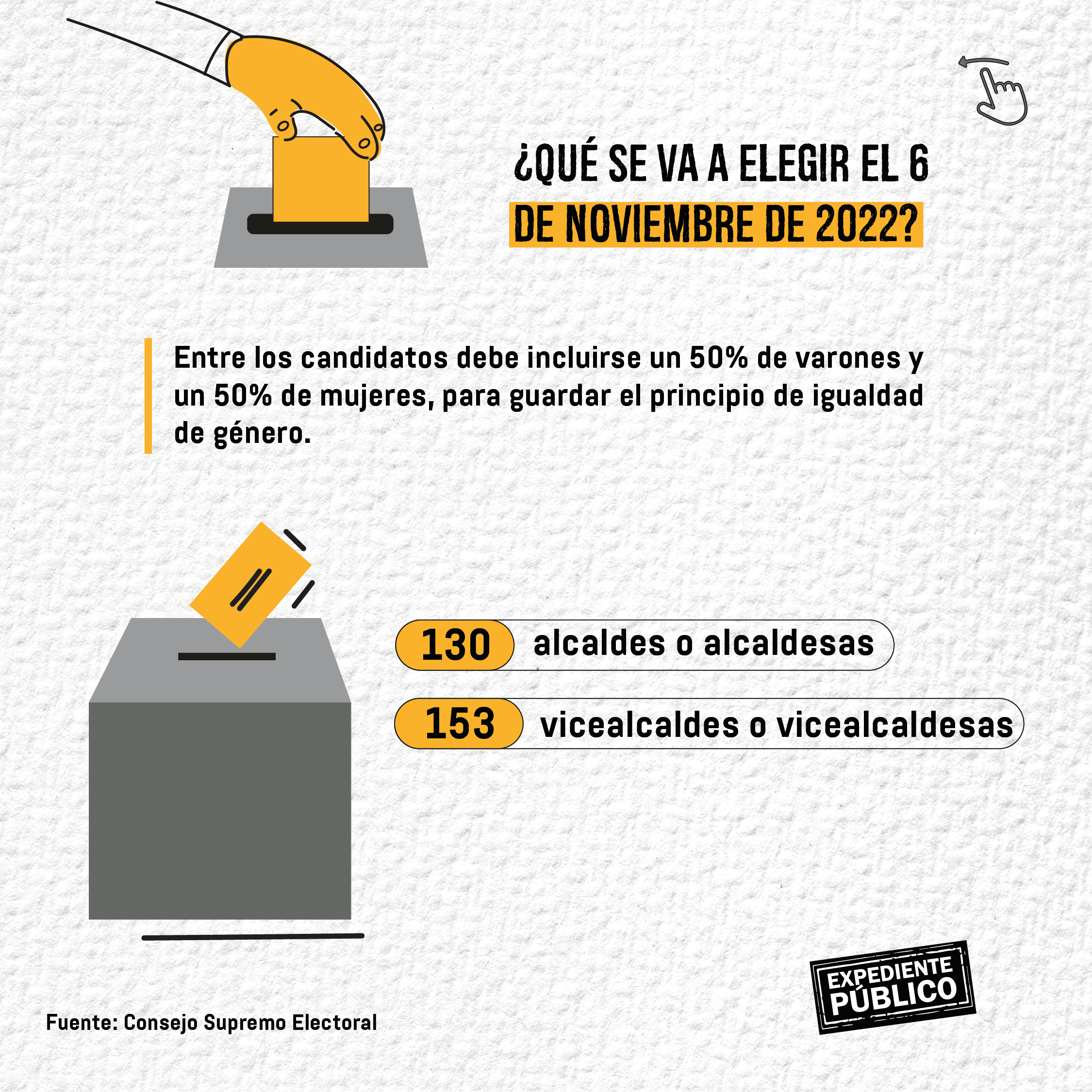 De los 6,076 candidatos, un total de 306 representan postulaciones para ocupar el cargo de alcalde y vicealcalde. El resto corresponde a los puestos de concejales con sus respectivos suplentes en cada municipalidad, que serán entregados atendiendo el principio de igualdad de género que establece la Ley Electoral, número 331.
