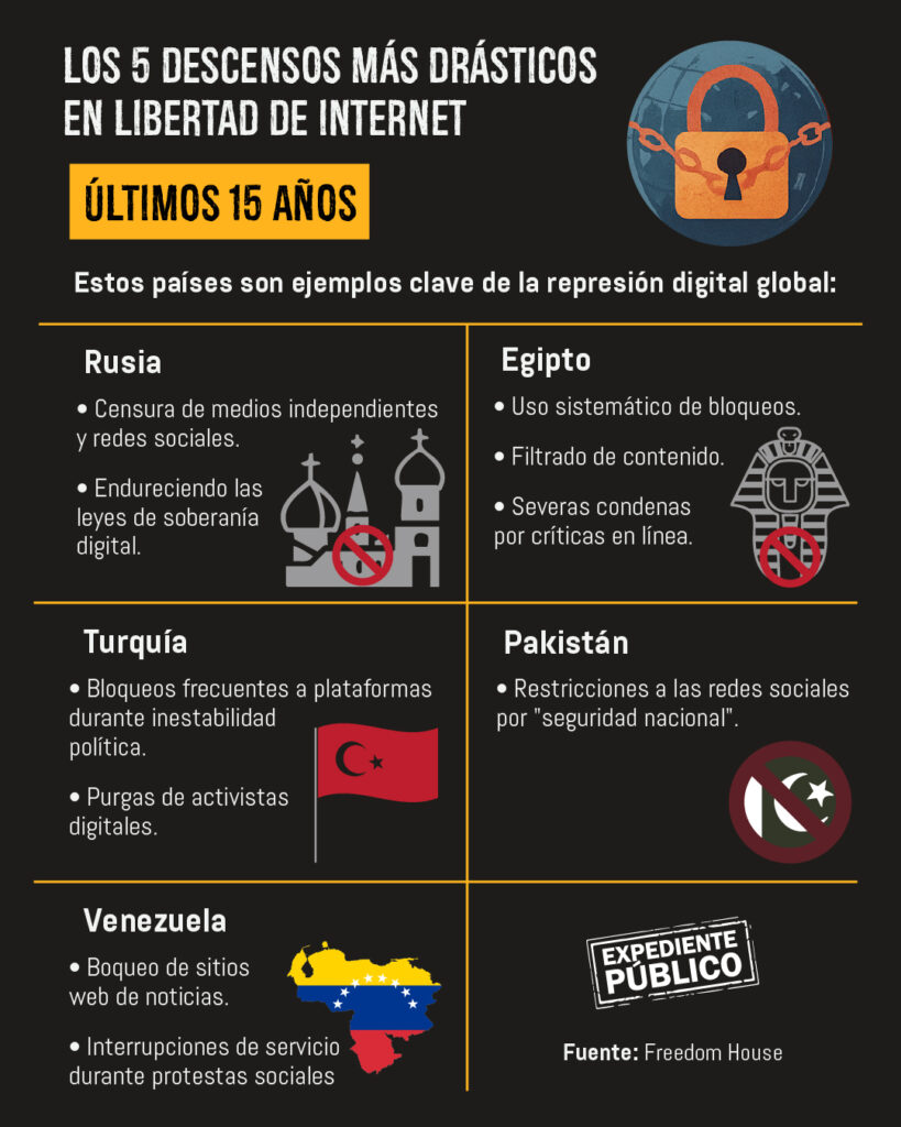 El reporte de Freedom House muestra que los gobiernos de Egipto, Pakistán, Rusia, Turquía y Venezuela intensificaron su control sobre el entorno en línea en respuesta a las manifestaciones ciudadanas contra su poder.