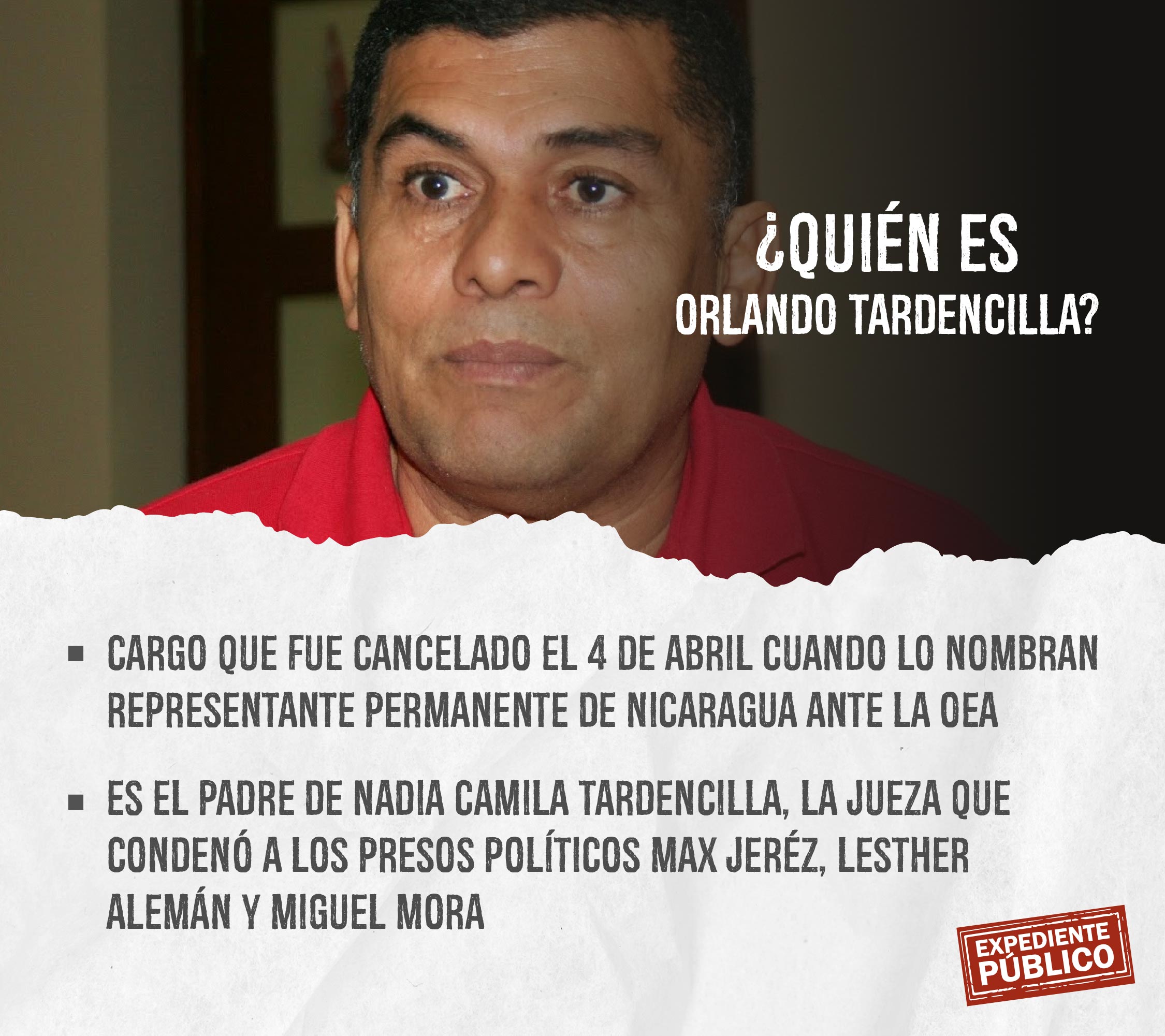 Tras el rechazo a Cerezo, el 22 de junio de 2021, Nicaragua presentó una terna conformada por tres de sus fichas, entre ellos el exguerrillero sandinista Orlando José Tardencilla, padre de la jueza Segundo de Distrito Penal de Juicio de Managua, Nadia Camila Tardencilla, denunciada por organismos de derechos humanos de ese país centroamericano como una de las “verdugos” de los presos políticos.