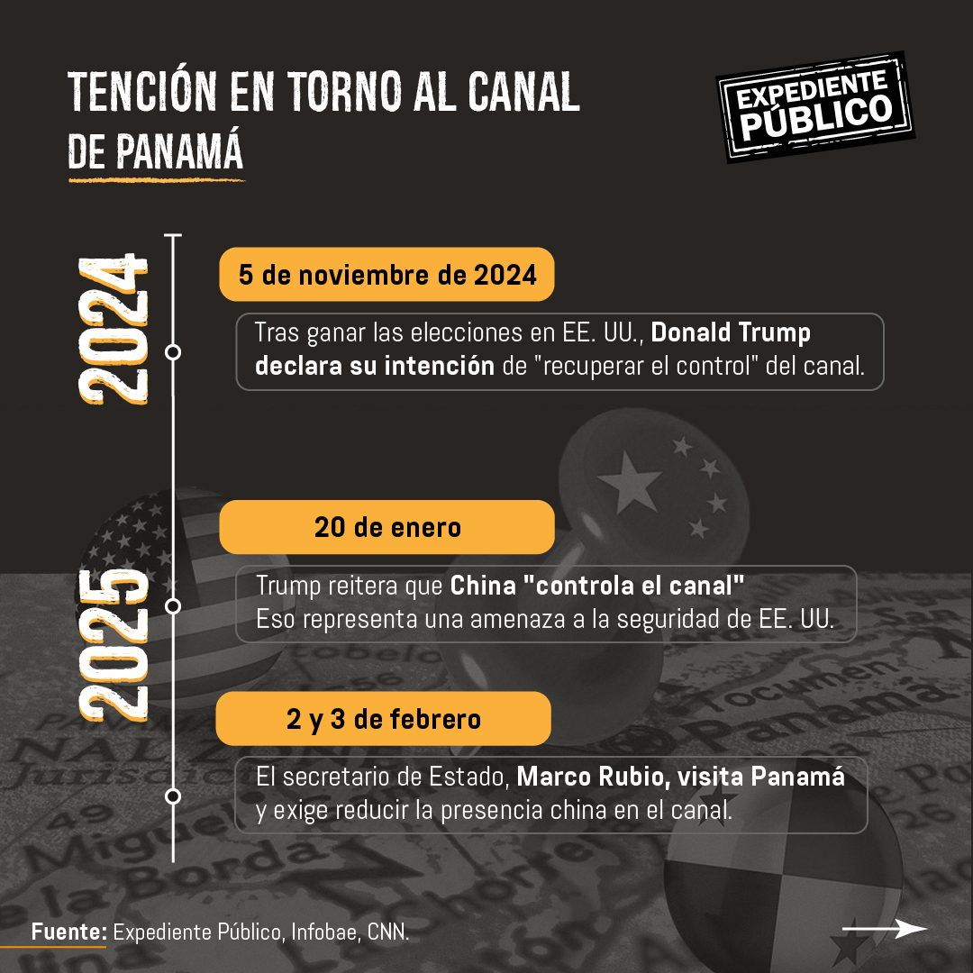 Por otra parte, desde su elección en noviembre de 2024, Trump sostiene el interés de recuperar el control del Canal de Panamá, sobre todo por la presencia de la concesionaria hongkonesa del multimillonario Li Ka-shing, ligado al Partido Comunista Chino.