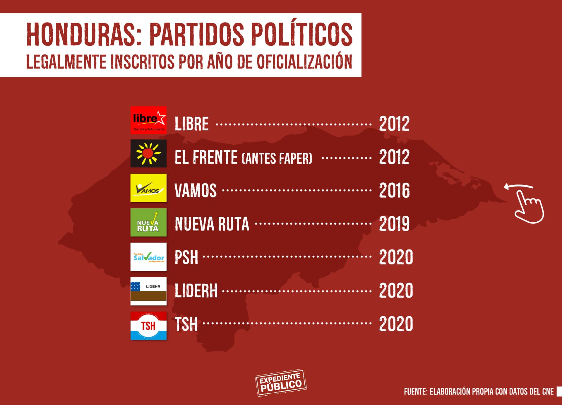 En 2009, los partidos políticos en Honduras eran cinco y para 2020 había 14 legalmente inscritos.