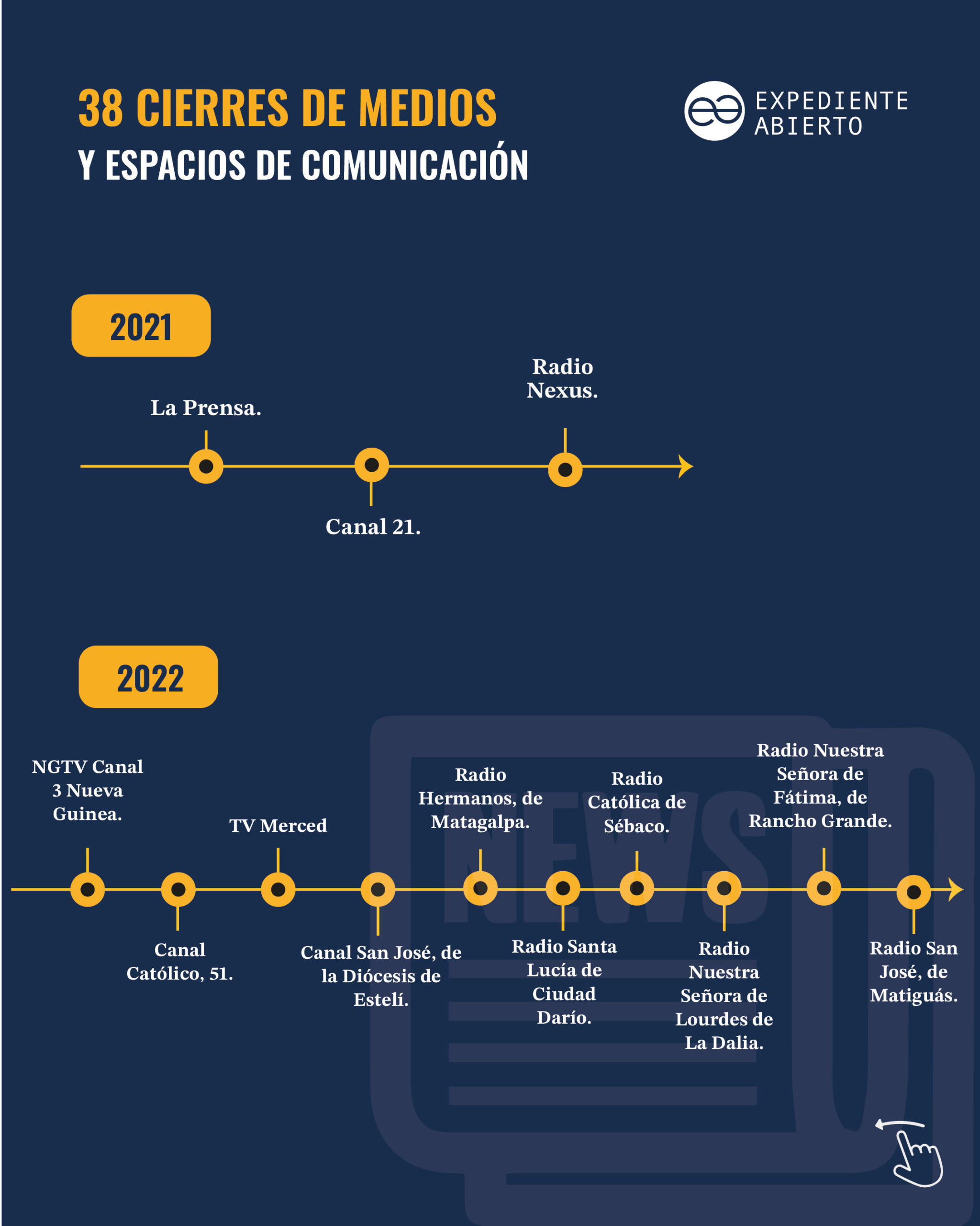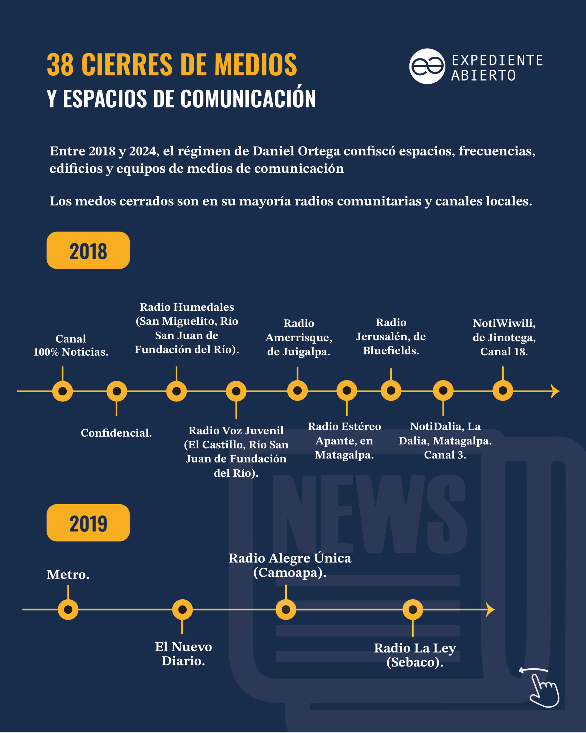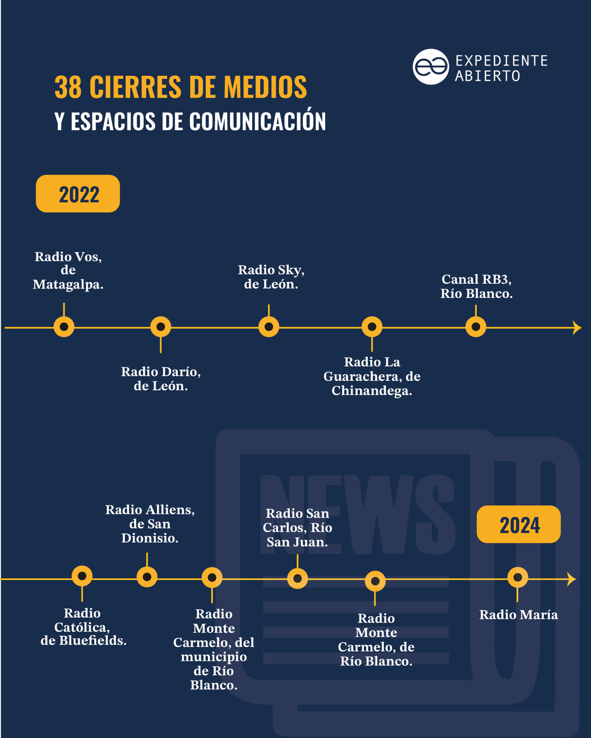 Entre 2018 y 2022, el régimen Ortega Murillo cerró al menos 57 medios de comunicación.