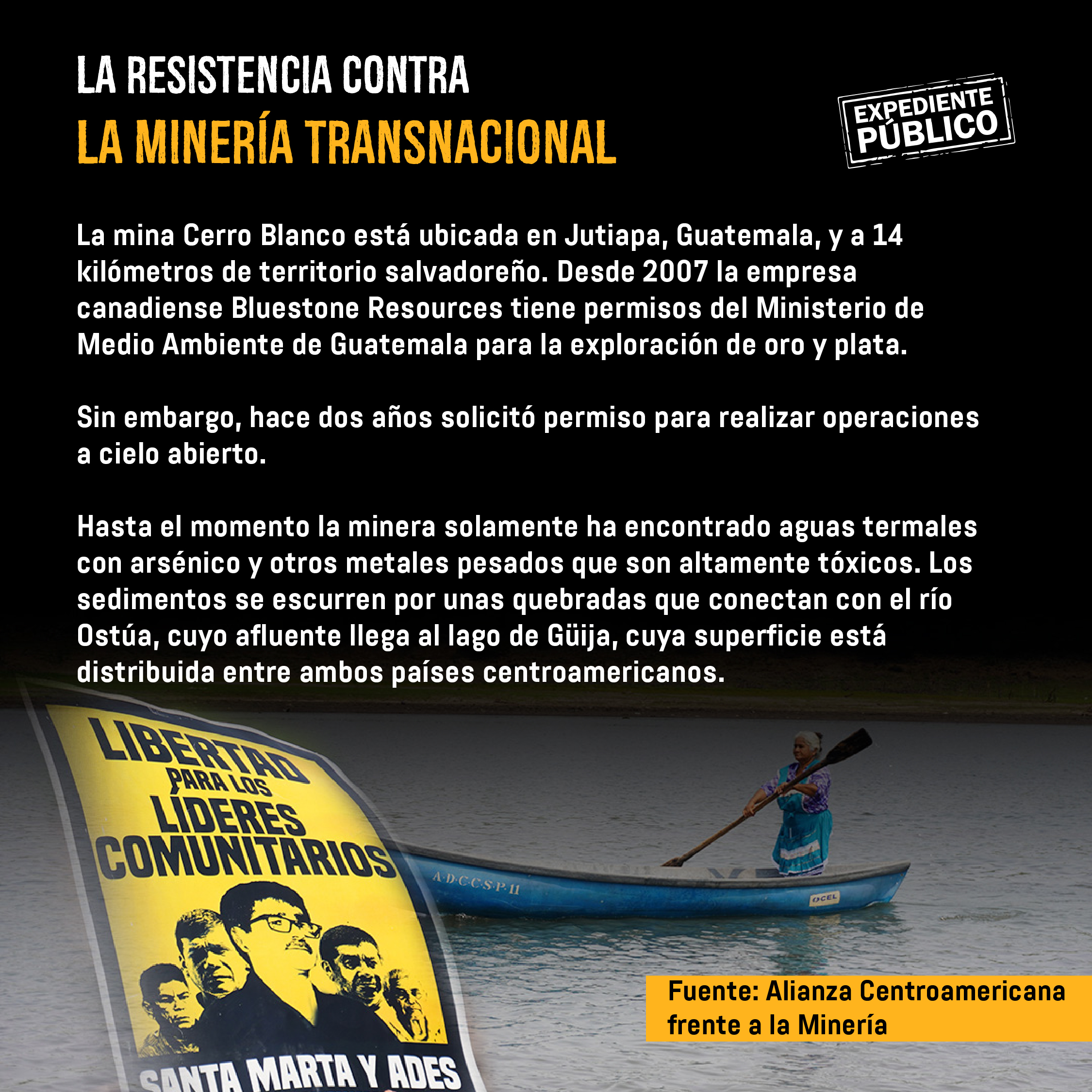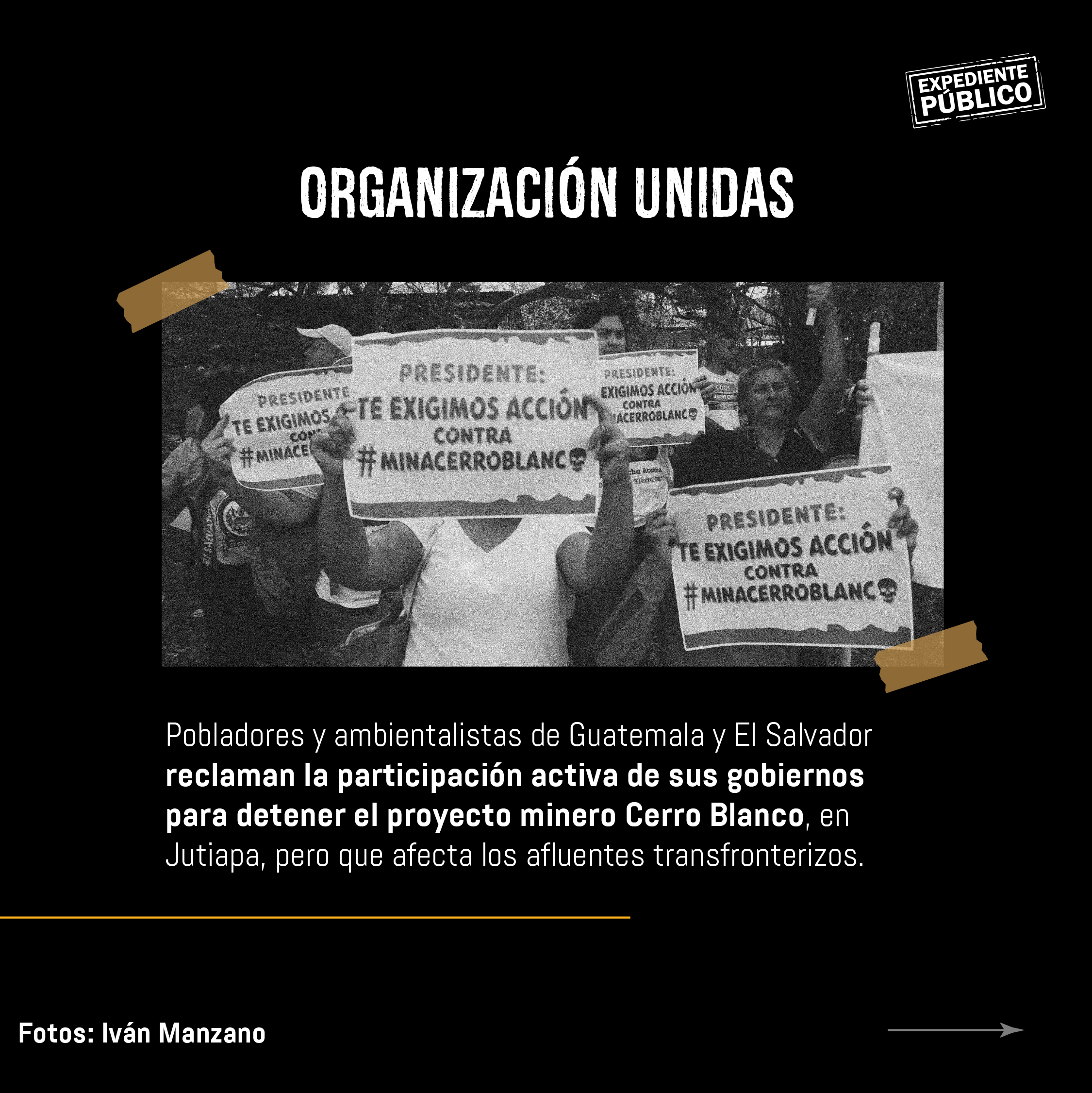 “Piensan utilizar ocho toneladas y media de cianuro, lo que equivale a 187 quintales de cianuro al día. Imagínese esa cantidad de químicos que venga a parar aquí. Eso sería exactamente la muerte de nuestro lago que compartimos”, declaró a Expediente Público el guatemalteco Jhony Barrera, activista del Comité Permanente Ambientalista de Asunción Mita, durante el encuentro de ecologistas en la que participaron junto a pobladores de ambos países.