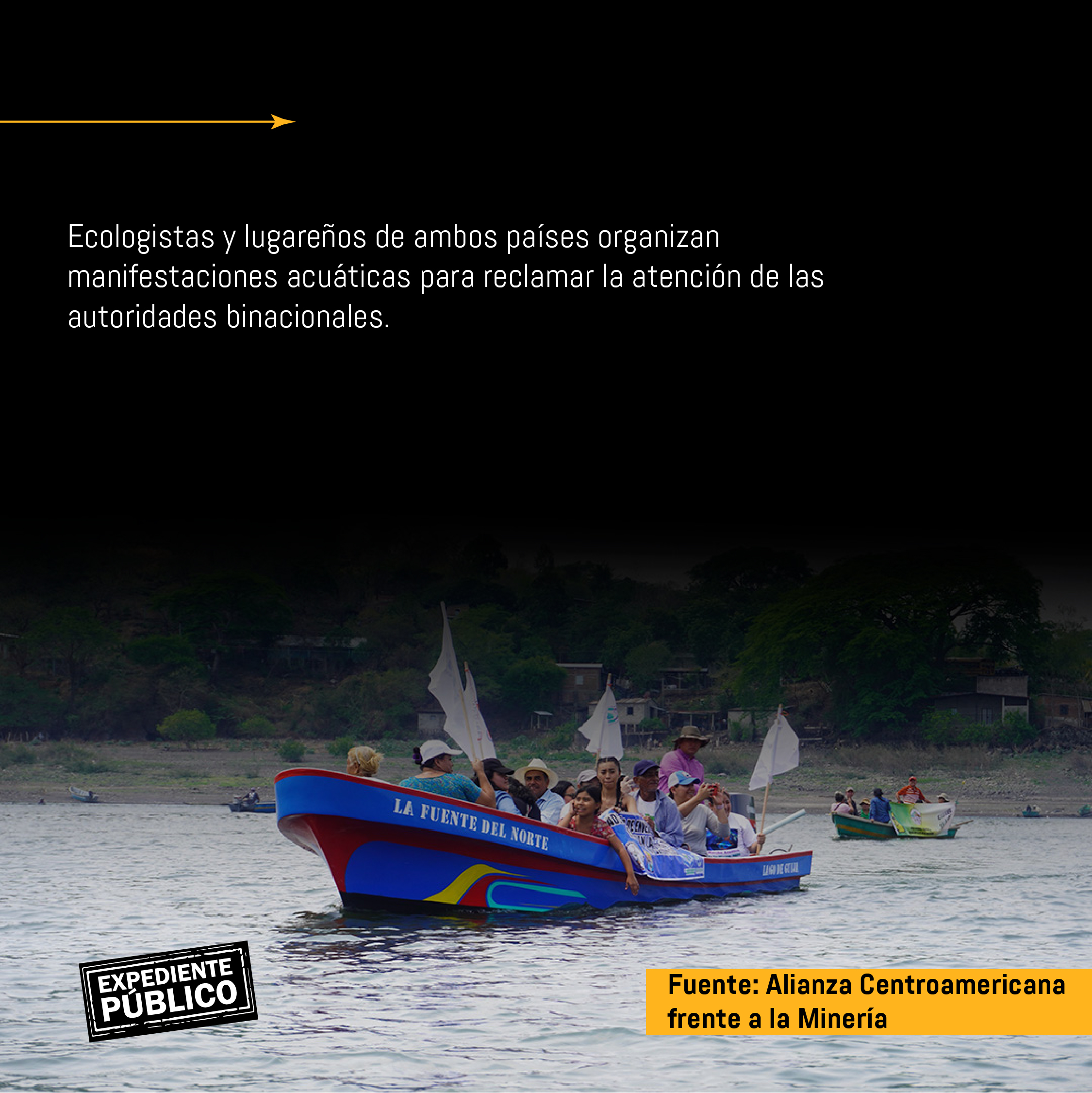 Por eso es que organizaciones ecologistas, junto a habitantes de ambos países, organizaron una manifestación en la ribera del lago junto a los lugareños para exigir a los gobiernos de Guatemala y El Salvador la creación de un mecanismo que garantice la protección de esta cuenca transnacional.