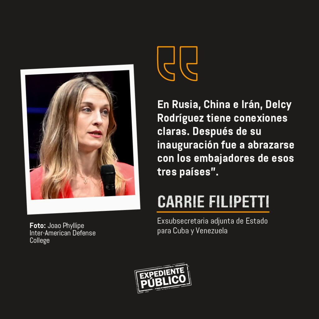 “En Rusia, China e Irán, como todos sabemos, Delcy Rodríguez tiene personalmente conexiones claras con esos países. La primera cosa que hizo después de su inauguración fue abrazarse a los embajadores de los tres países”, recordó Filipetti.