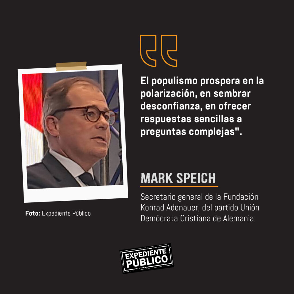 En esa misma línea, el secretario general de la Fundación Konrad Adenauer, del partido Unión Demócrata Cristiana de Alemania, Mark Speich, también coincidió en que la expansión del populismo representa una amenaza a la democracia.