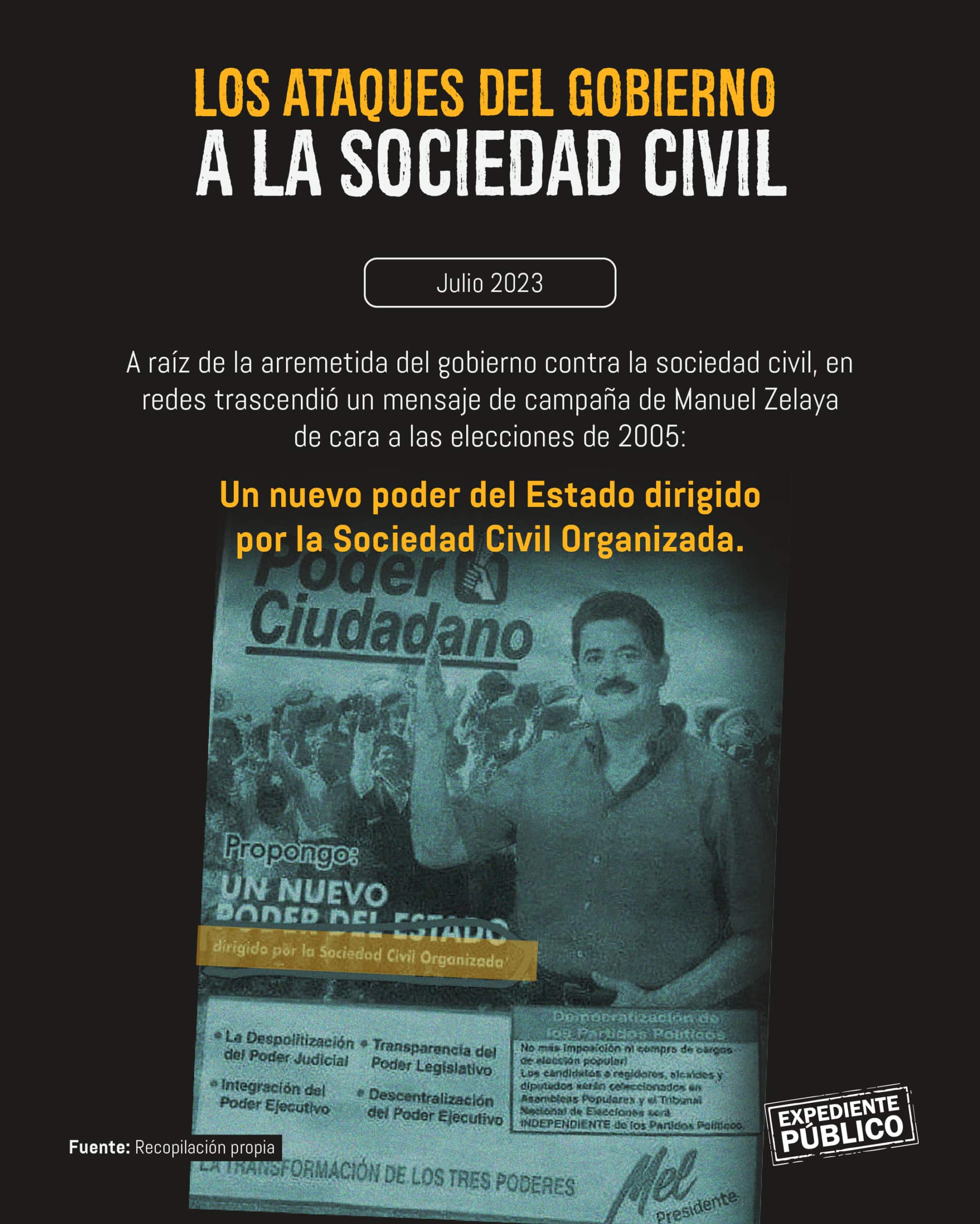 Ramírez recordó que cuando el partido Libre asumió el poder no se reunió con las organizaciones de sociedad civil que le eran afines, lo que fue una alerta porque si no veía como aliados a grupos que de alguna manera le ayudaron en la oposición a Zelaya y a Castro, peor iba a ser con aquellas que denuncian la corrupción.
