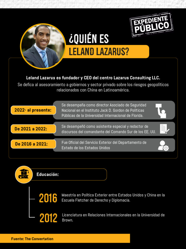 Lazarus enfatizó que Estados Unidos debe trabajar con herramientas propias para reforzar las voces latinoamericanas que pongan en evidencia las implicaciones que hay detrás acuerdos con China, como la falta de transparencia en contratos o cláusulas secretas predadoras.