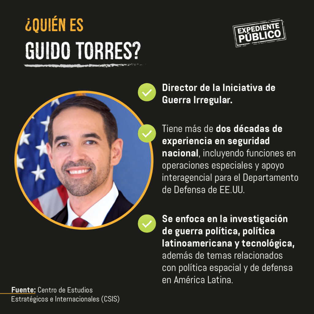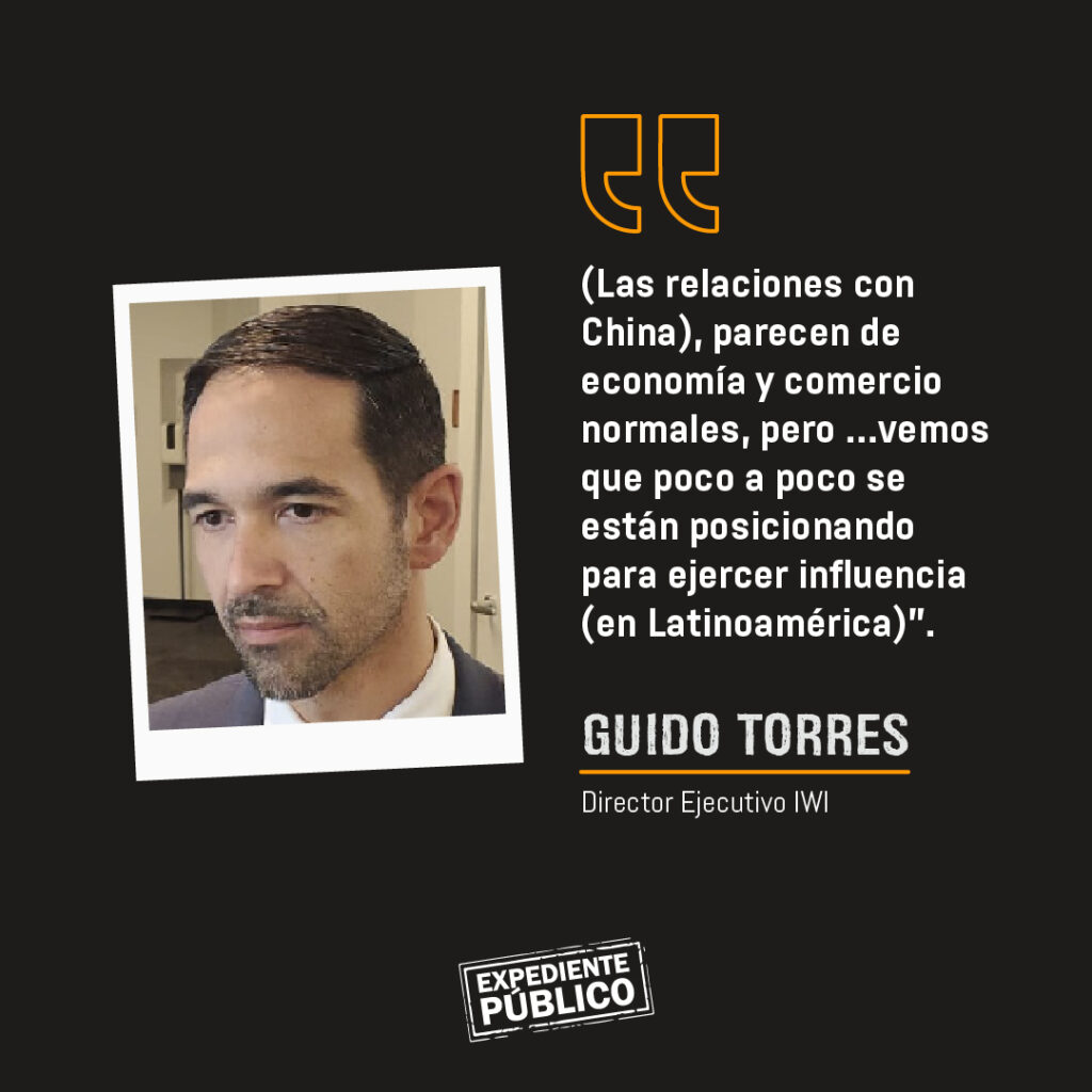 Guido Torres, director ejecutivo de la Iniciativa de Guerra Irregular (IWI, por sus siglas en inglés), afirmó a Expediente Público que para comprender la incursión de China en América Latina se tiene que ver más allá del comercio y la cooperación, e identificar las operaciones del Partido Comunista Chino.