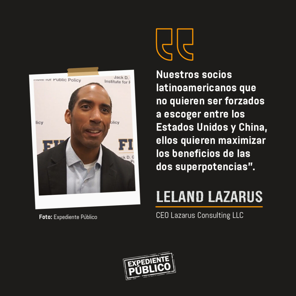 Lazarus sostiene que los gobiernos latinoamericanos perciben la adversidad entre EE. UU. y China como una competencia entre grandes superpotencias y no quieren ser fichas de este juego.