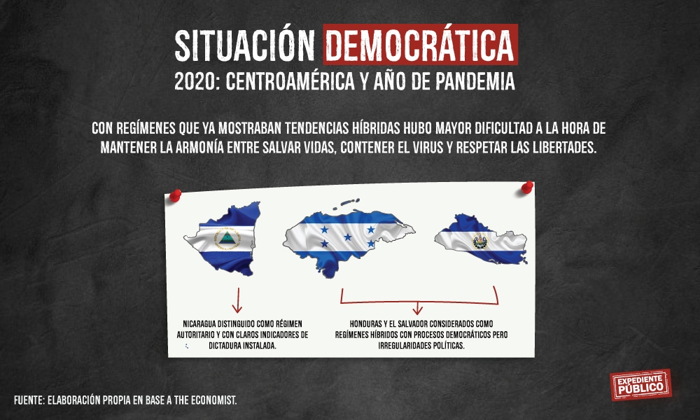 En Centroamérica con toques de queda, cuarentenas estrictas e incluso prisión por salir en el confinamiento, el Covid-19 reforzó e incluso justificó a los regímenes que ya mostraban tendencias híbridas como Guatemala, El Salvador y Honduras o autoritarias como Nicaragua, advierte The Economist.