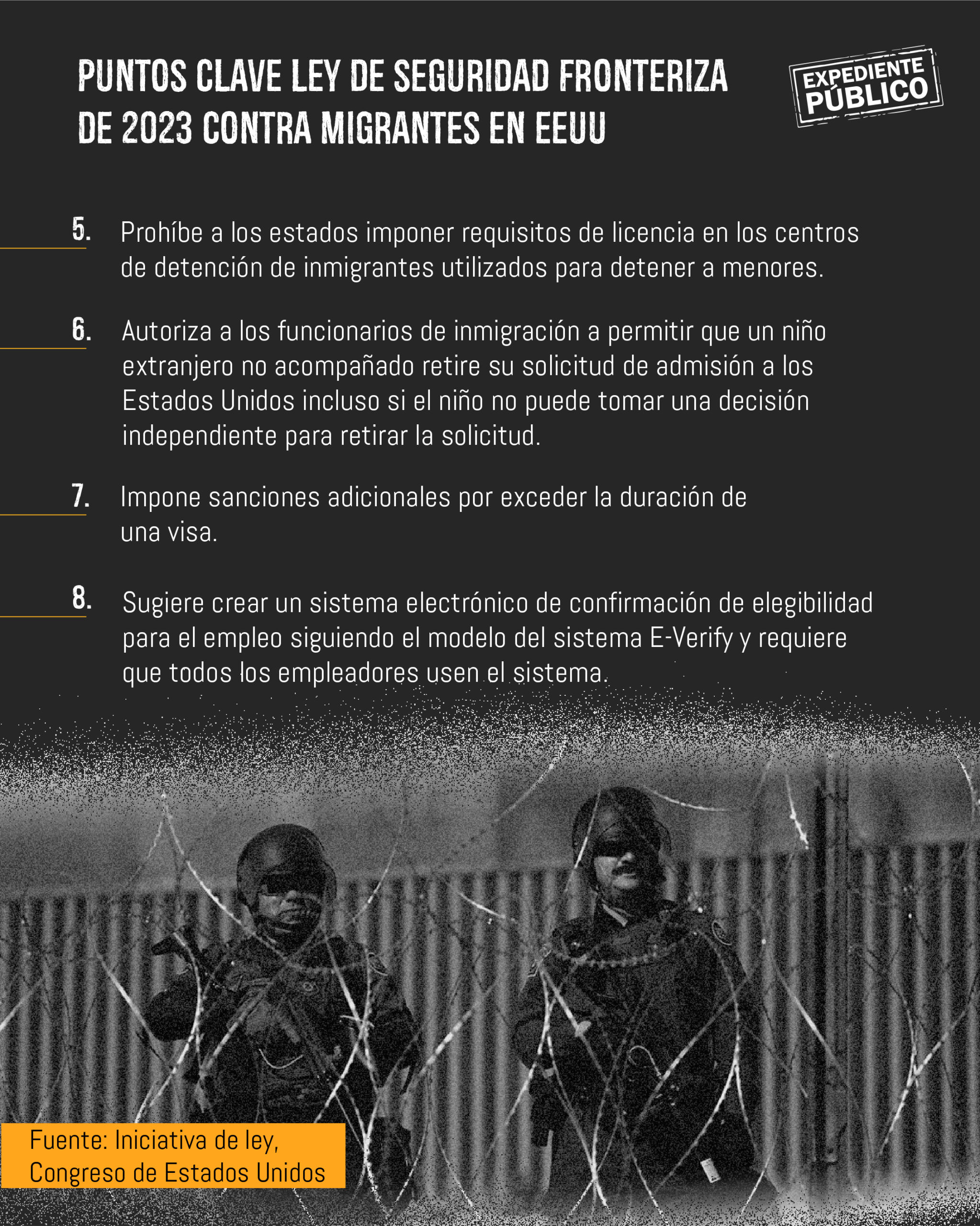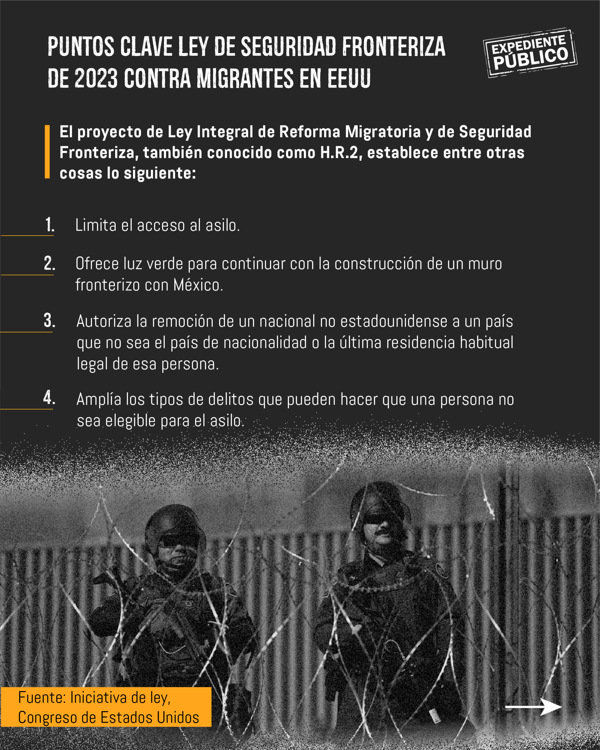 * El proyecto de Ley H.R. 2, conocida como Ley de Seguridad Fronteriza de 2023, propone las bases para continuar con el muro fronterizo y diezmaría el acceso al asilo, entre otras limitantes a los migrantes.