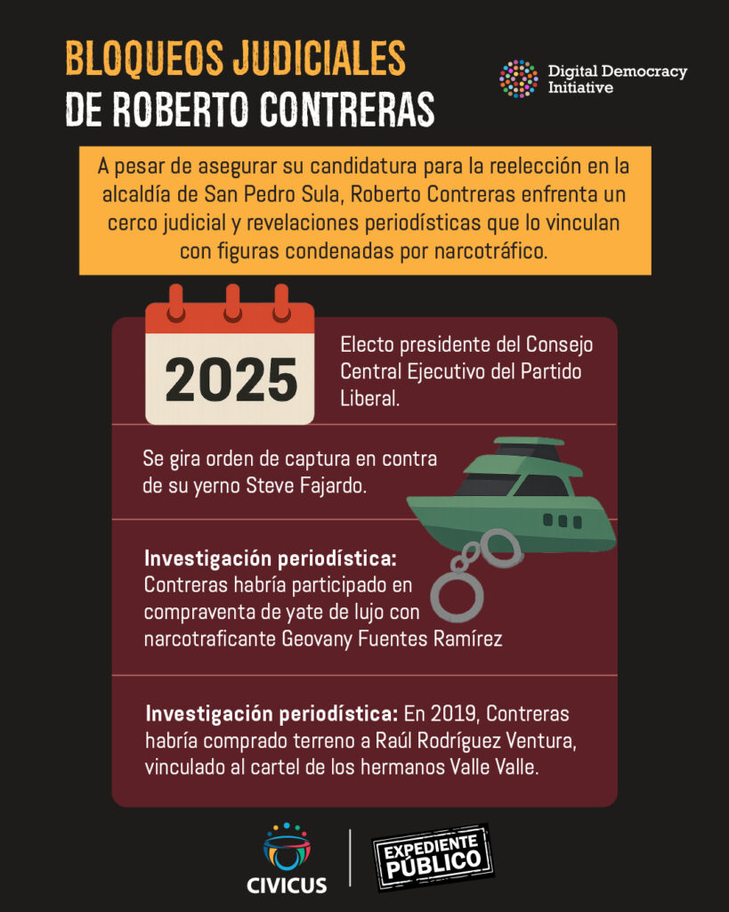 Antes de que libraran la orden de captura contra su yerno, en mayo de 2025, Contreras fue electo presidente del Consejo Central Ejecutivo del Partido Liberal (CCEPL), máximo órgano de dirección del liberalismo.