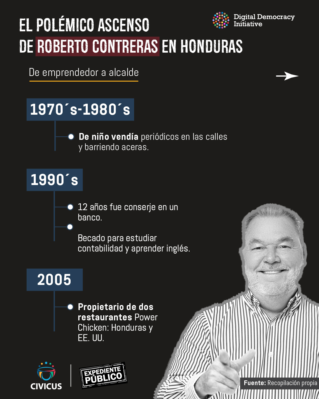 Contreras entró en la política hondureña a inicios de este siglo como un outsider, como un exitoso emprendedor que desafiaba el discurso gastado de los partidos tradicionales. Su principal credencial era su historia personal, la de un pobre que, a fuerza de trabajo y audacia empresarial, había alcanzado el éxito.