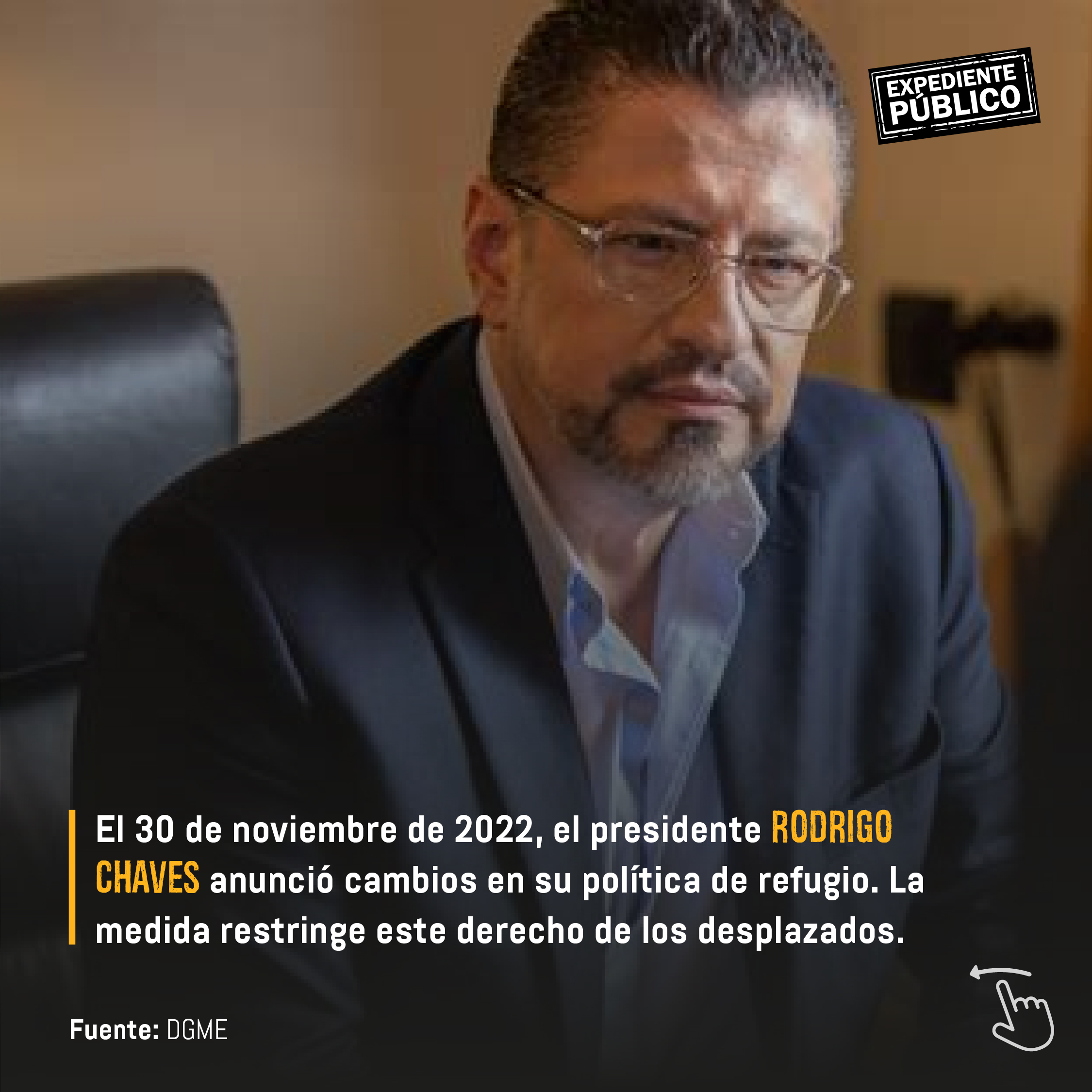 El 30 de noviembre de 2022 el presidente de Costa Rica Rodrigo Chaves, ordenó cambios en la política migratoria: “Teníamos un portillo abierto en que migrantes económicos se hacían pasar por ese tipo de personas que merecen refugio para poder trabajar en el país”, argumentó.