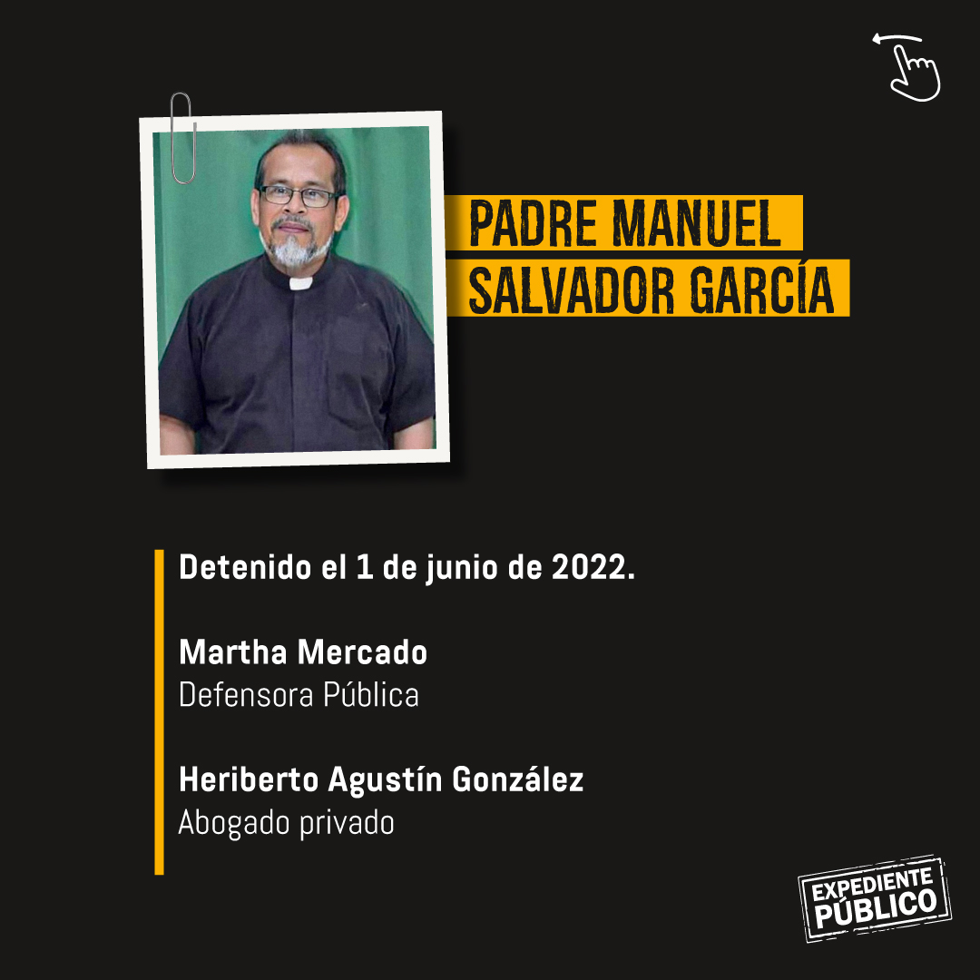 El padre Manuel Salvador García Rodríguez, párroco de la iglesia Jesús de Nazareno, de Nandaime, Granada (a 55 km de Managua), fue el primer religioso en ser detenido el 7 de junio de 2022. Esto luego que el 2 de junio circulara un vídeo donde aparece Martha Candelaria Rivas Hernández acusando al cura de haberla golpeado con un candado en el pómulo derecho.